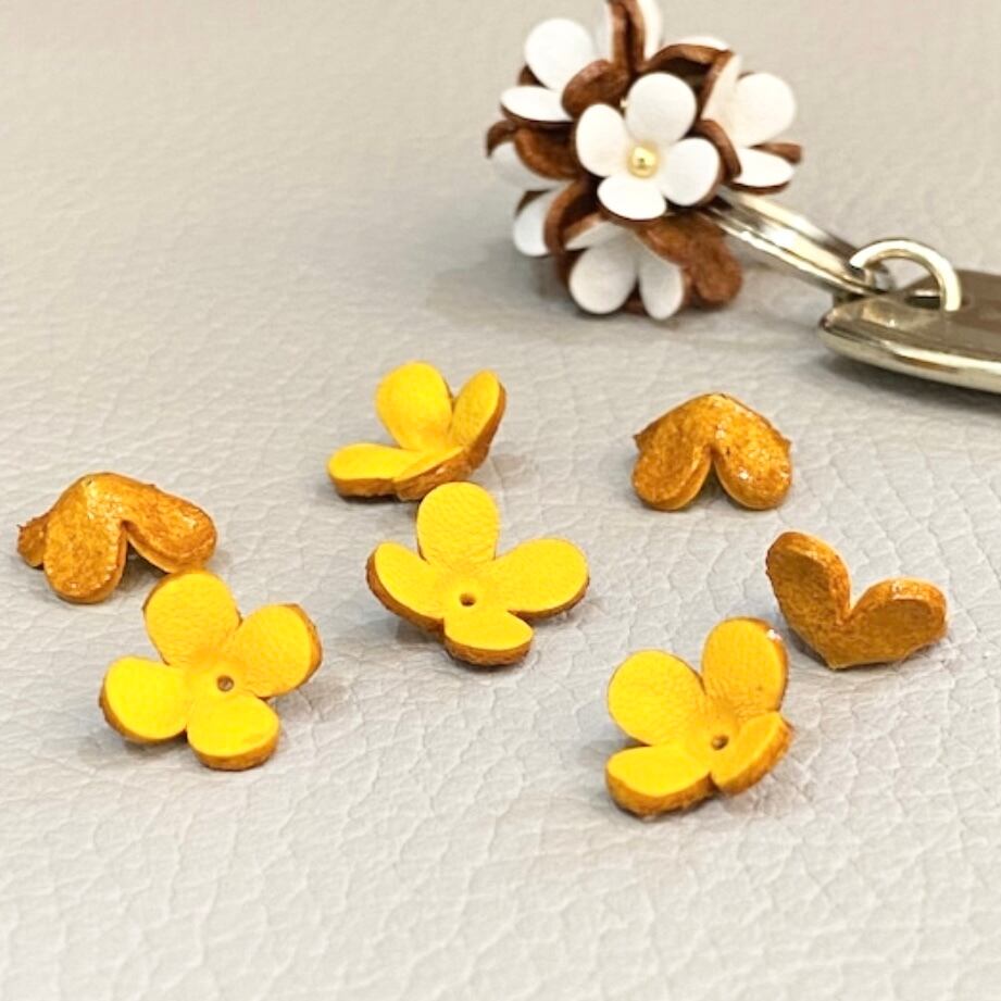 ※手染め、手加工の為、同色でも多少色味の濃淡があるのと、花型の開き気味なものやつぼみ気味もの等もございます。この感じが生花の様にアクセサリー製作に使用することでナチュラルさがでますので、形、色味に関してその点をご了承下さい
