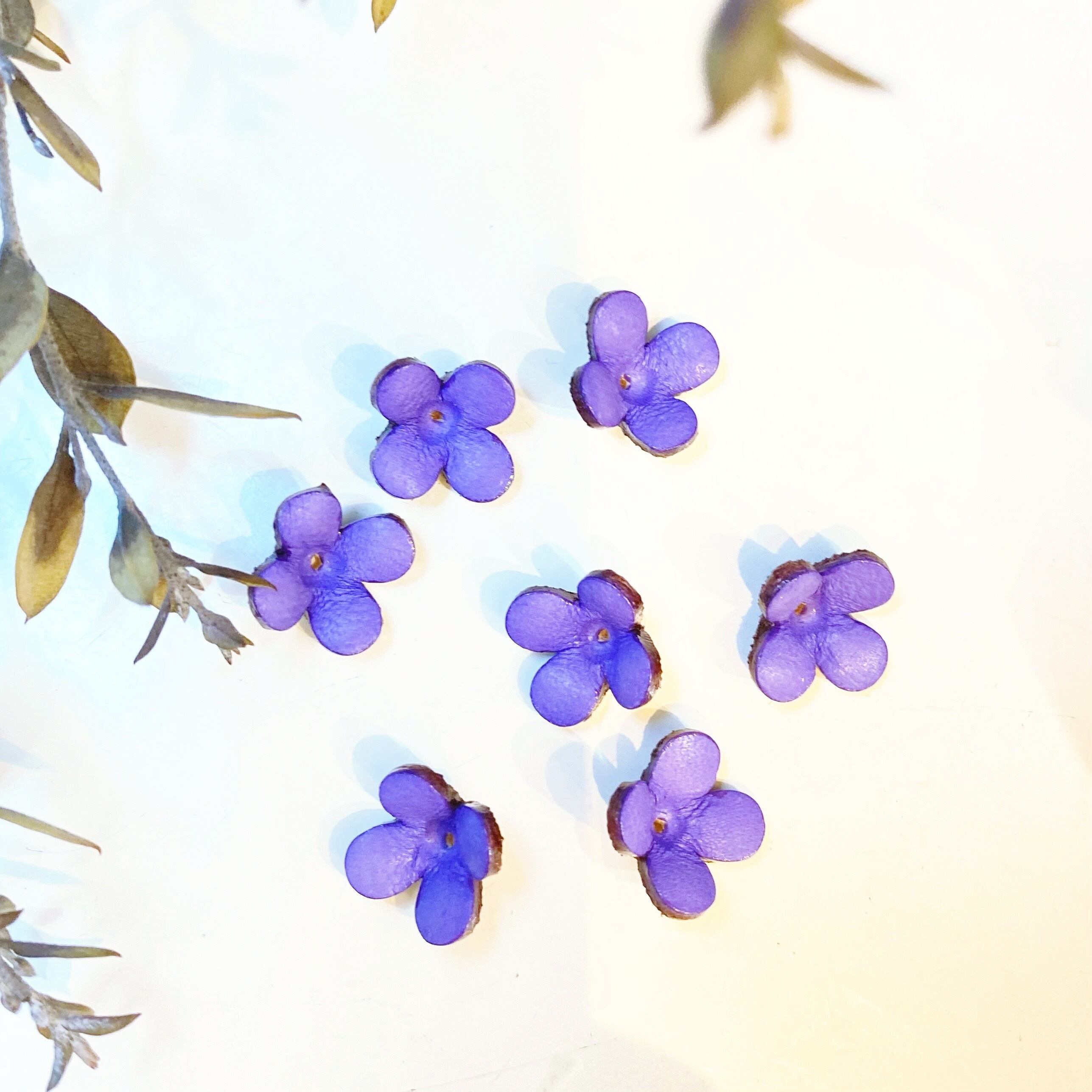 ※手染め、手加工の為、同色でも多少色味の濃淡があるのと、花型の開き気味なものやつぼみ気味もの等もございます。この感じが生花の様にアクセサリー製作に使用することでナチュラルさがでますので、形、色味に関してその点をご了承下さい