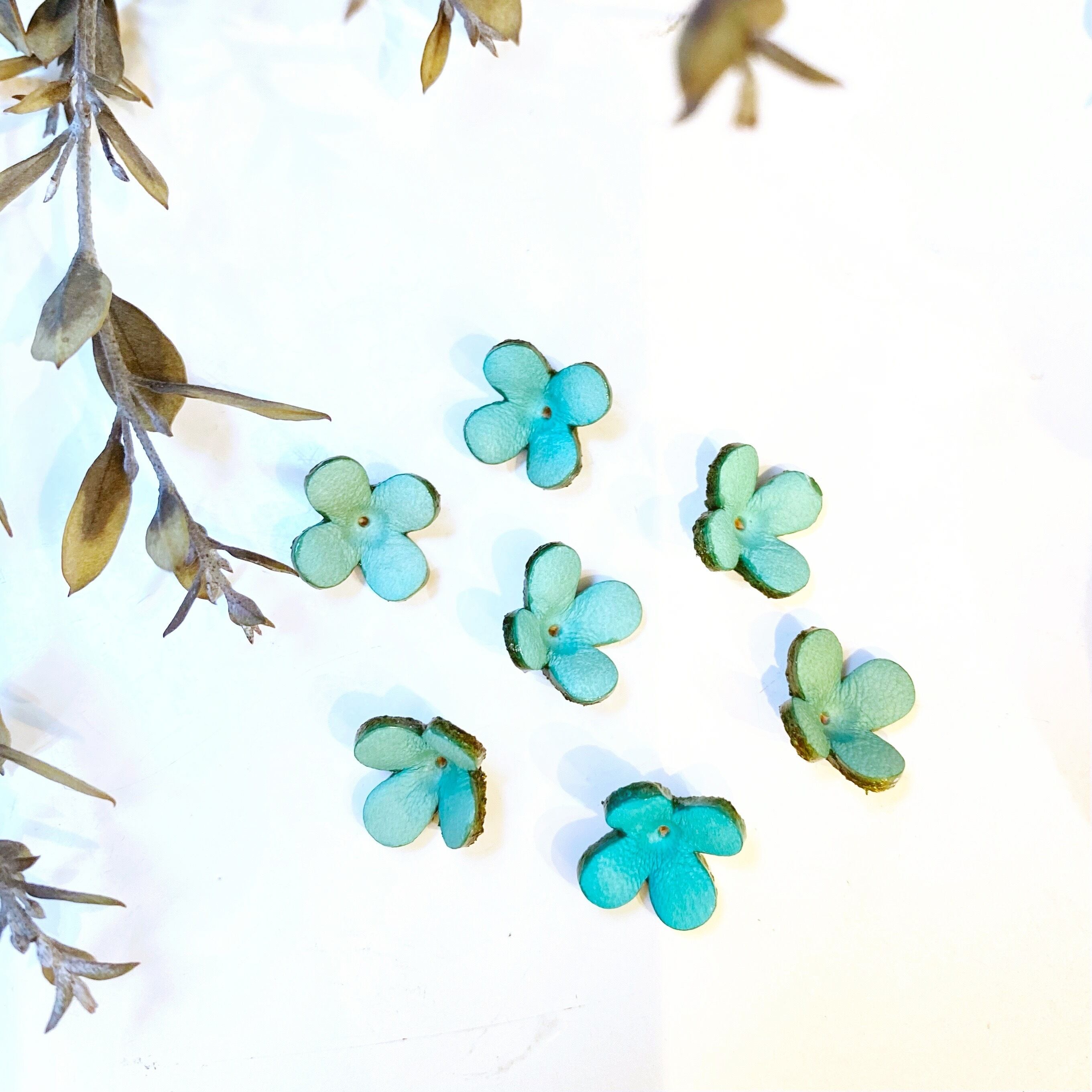 ※手染め、手加工の為、同色でも多少色味の濃淡があるのと、花型の開き気味なものやつぼみ気味もの等もございます。この感じが生花の様にアクセサリー製作に使用することでナチュラルさがでますので、形、色味に関してその点をご了承下さい