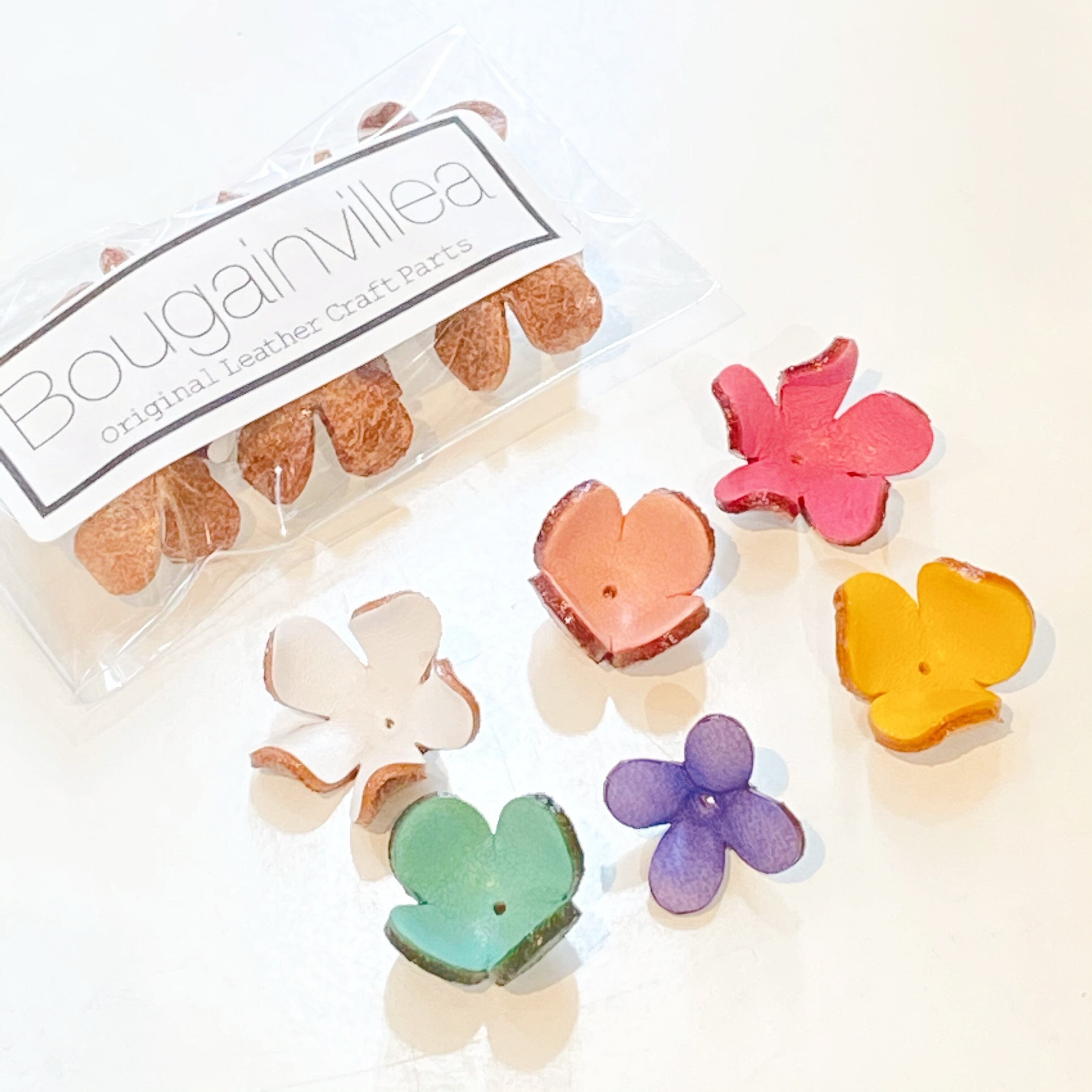 【お試しパーツ】4種花型レザーフラワー(パステルカラー)ピン無しタイプ6個入 15mm~25mm