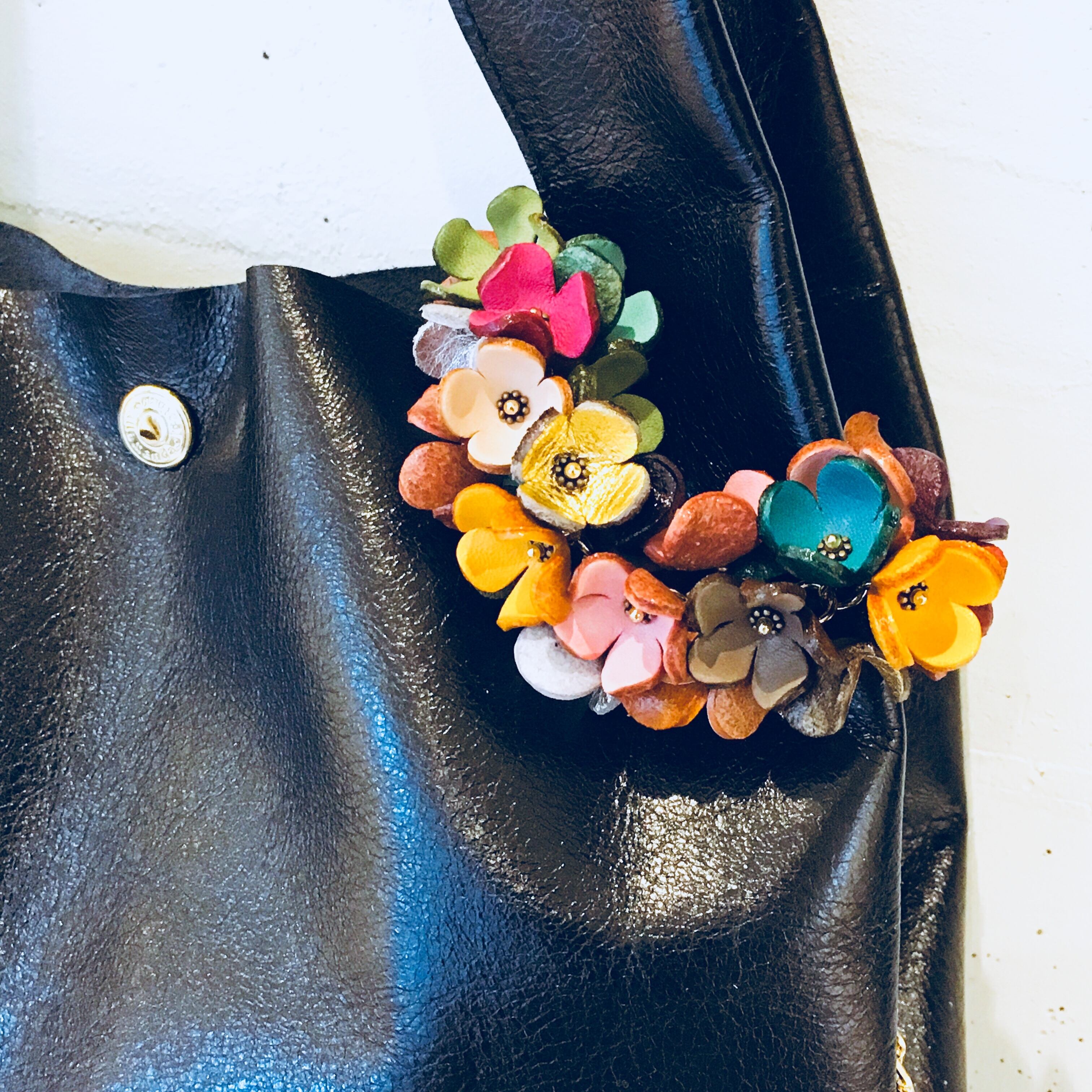 【お試しパーツ】4種花型レザーフラワー(マルチカラー)ピン無しタイプ6個入 15mm~25mm