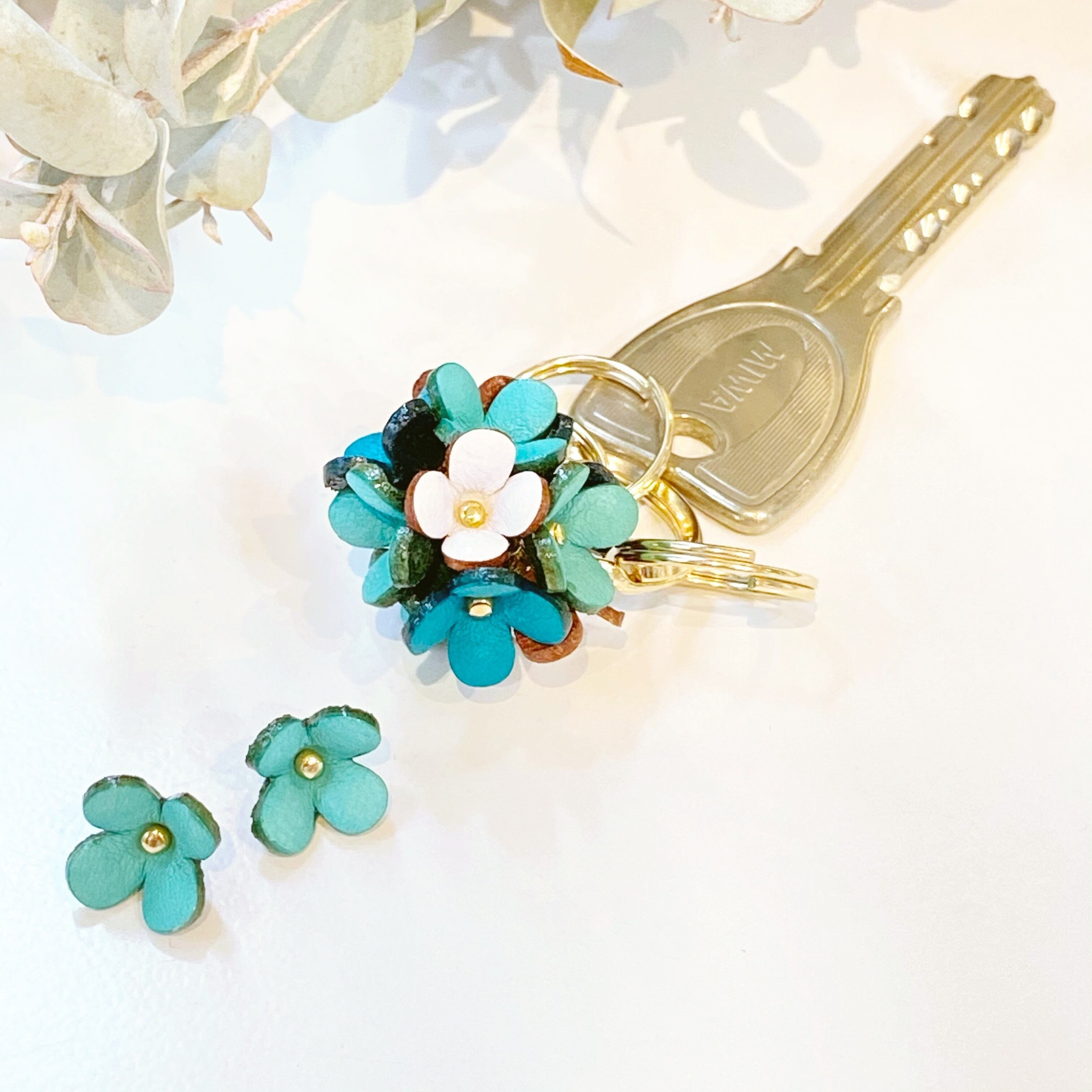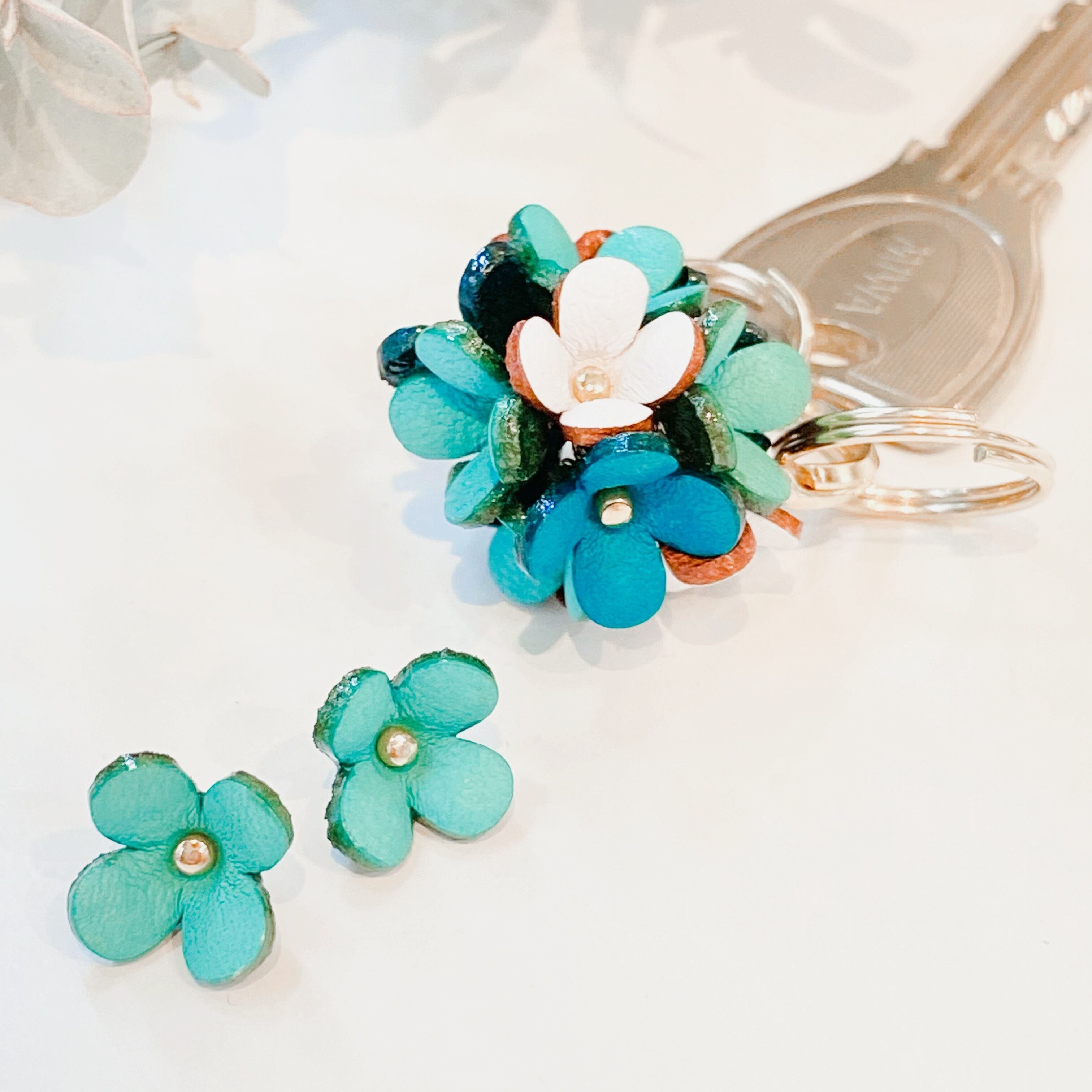 【3D(立体)本革フラワーパーツ】カランコエ(ピン付きタイプ)ペールブルー2個セット
