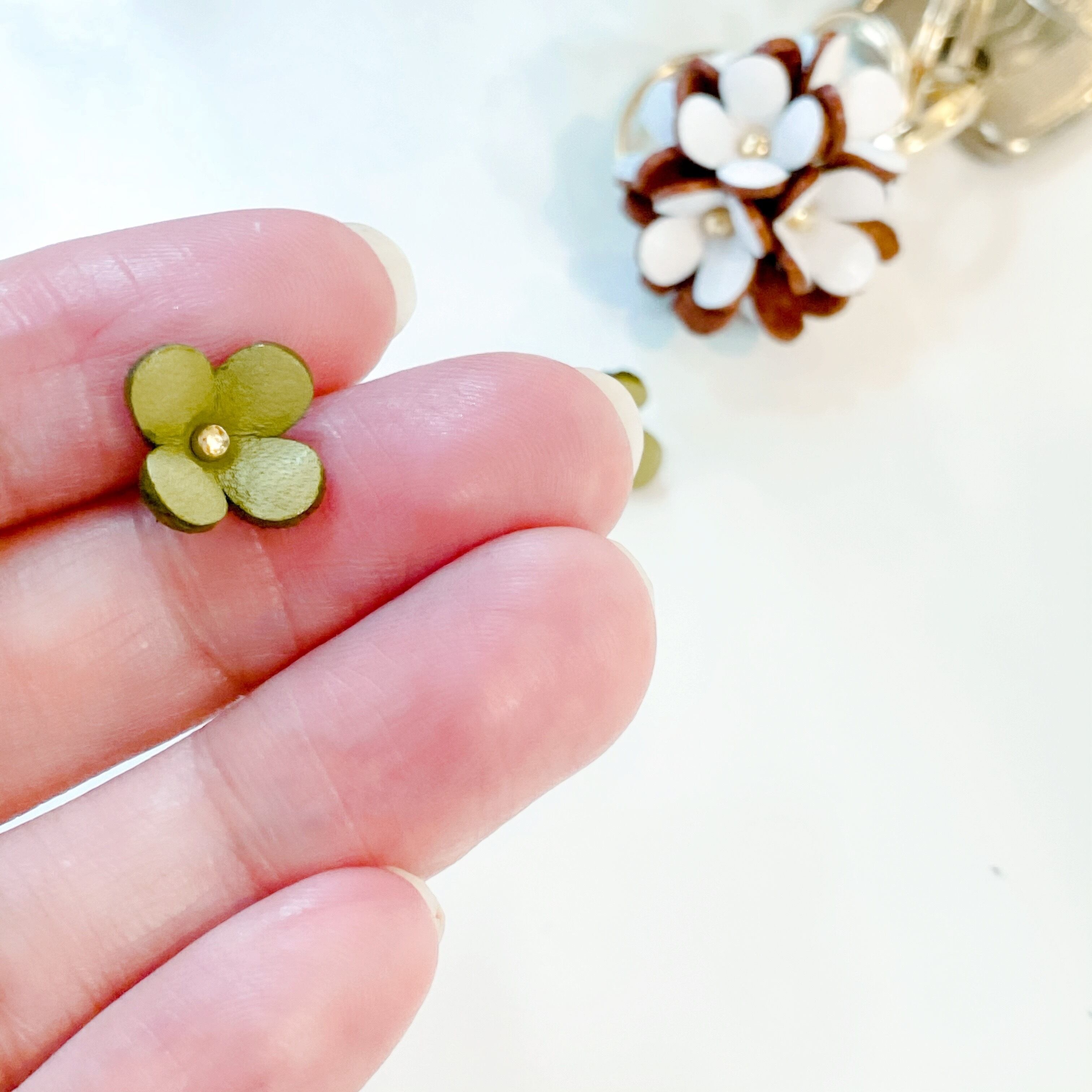 【3D(立体)本革フラワーパーツ】カランコエ(ピン付きタイプ)オリーブ2個セット