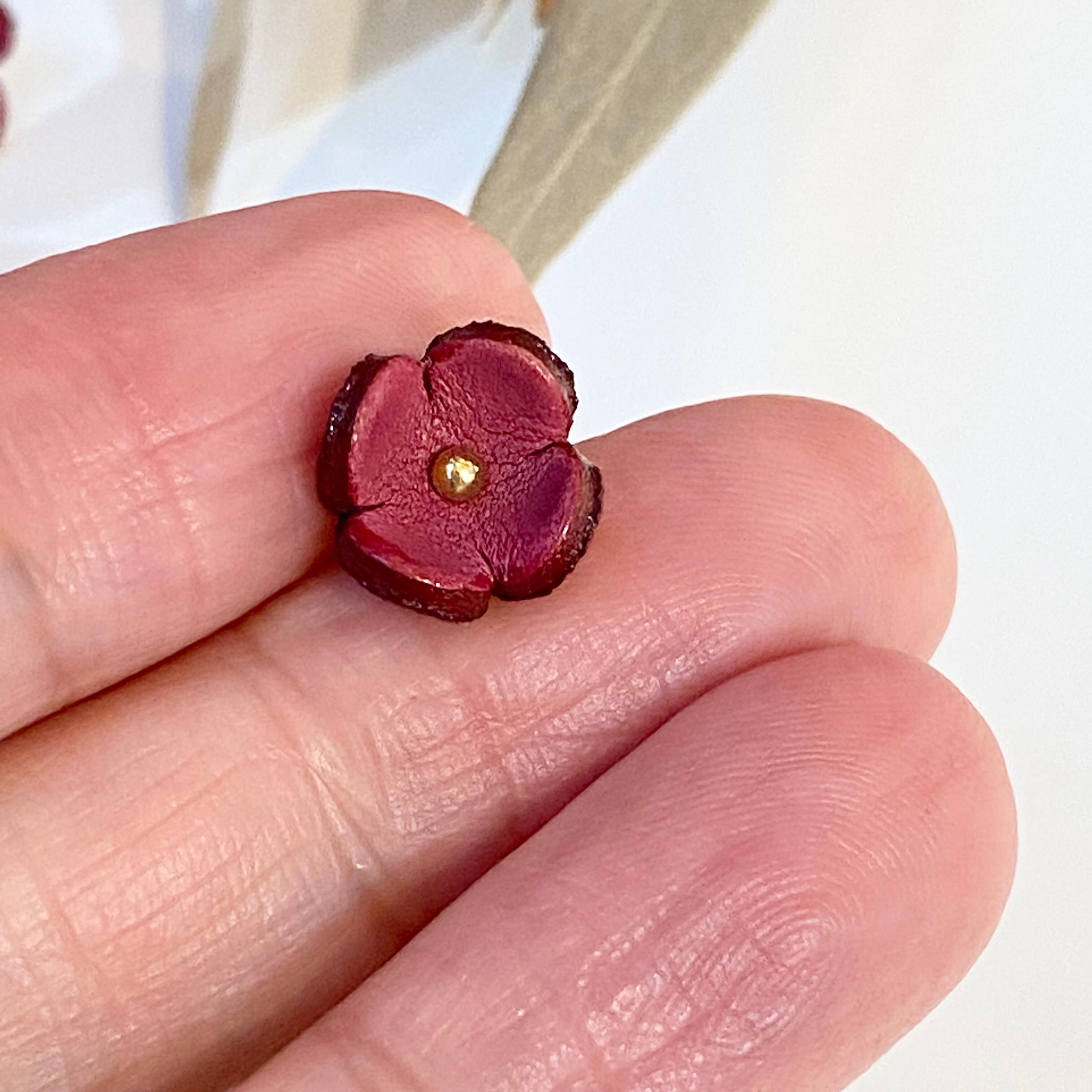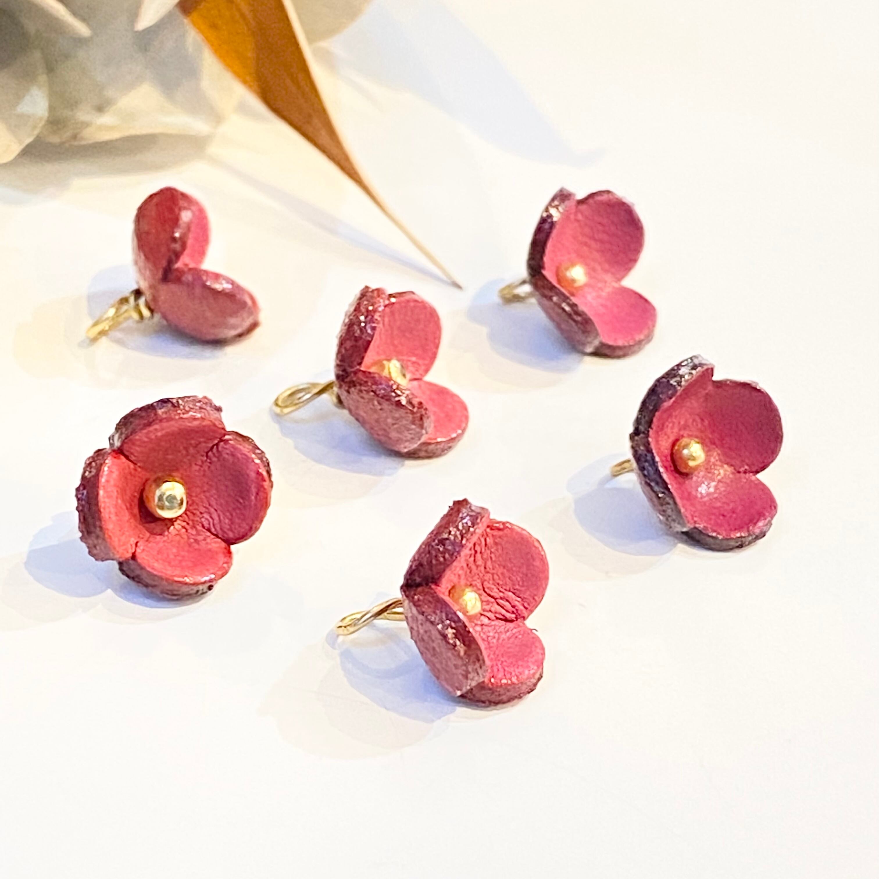 【アウトレット3D立体レザーフラワー】クローバーS(ピン付きタイプ)レッド6個セット