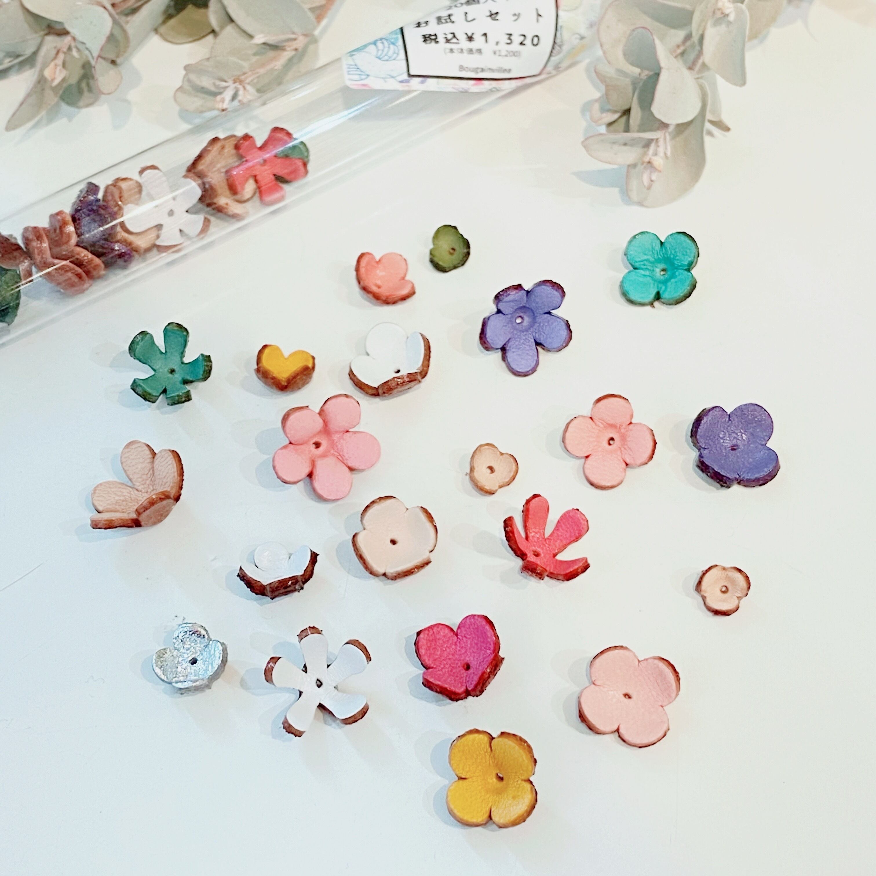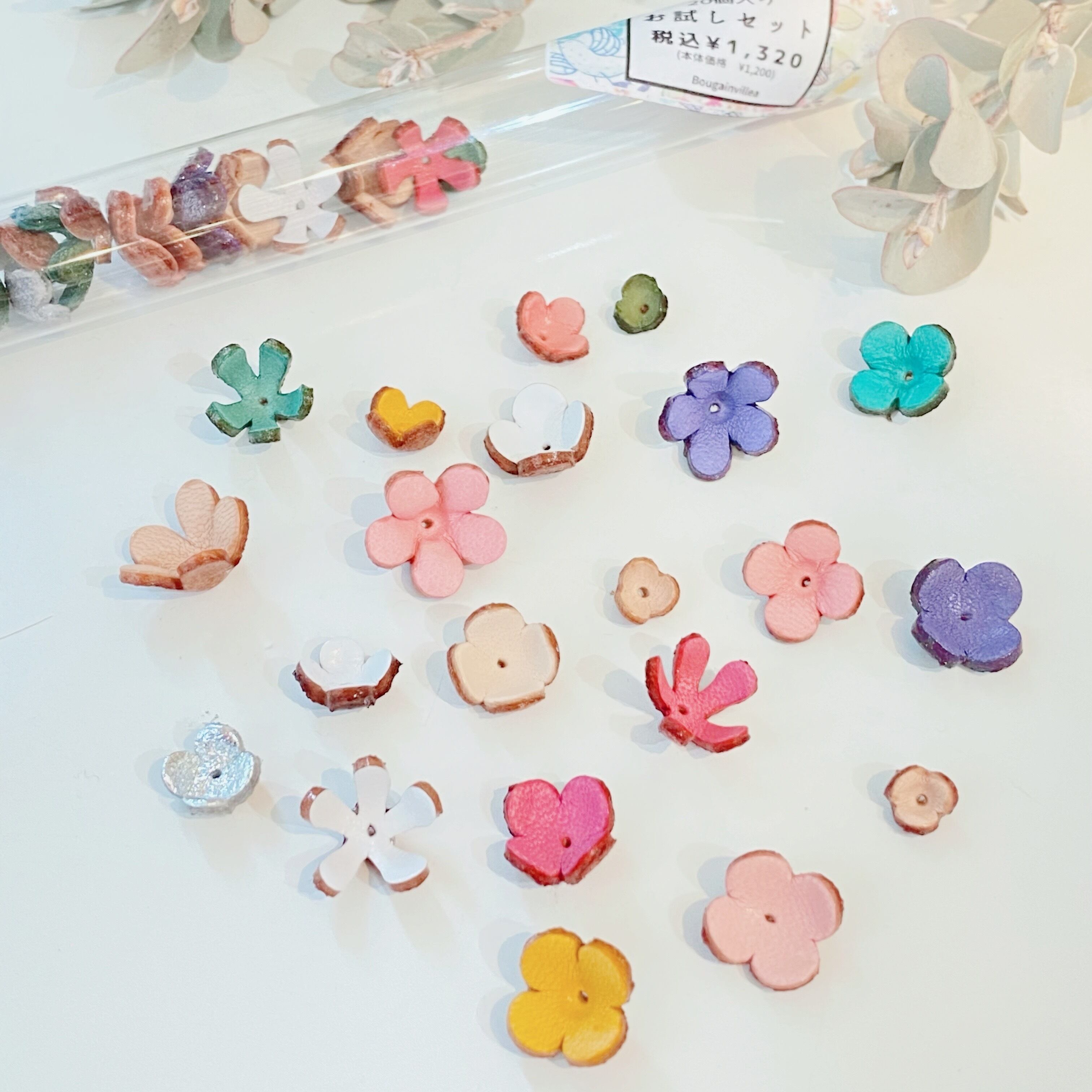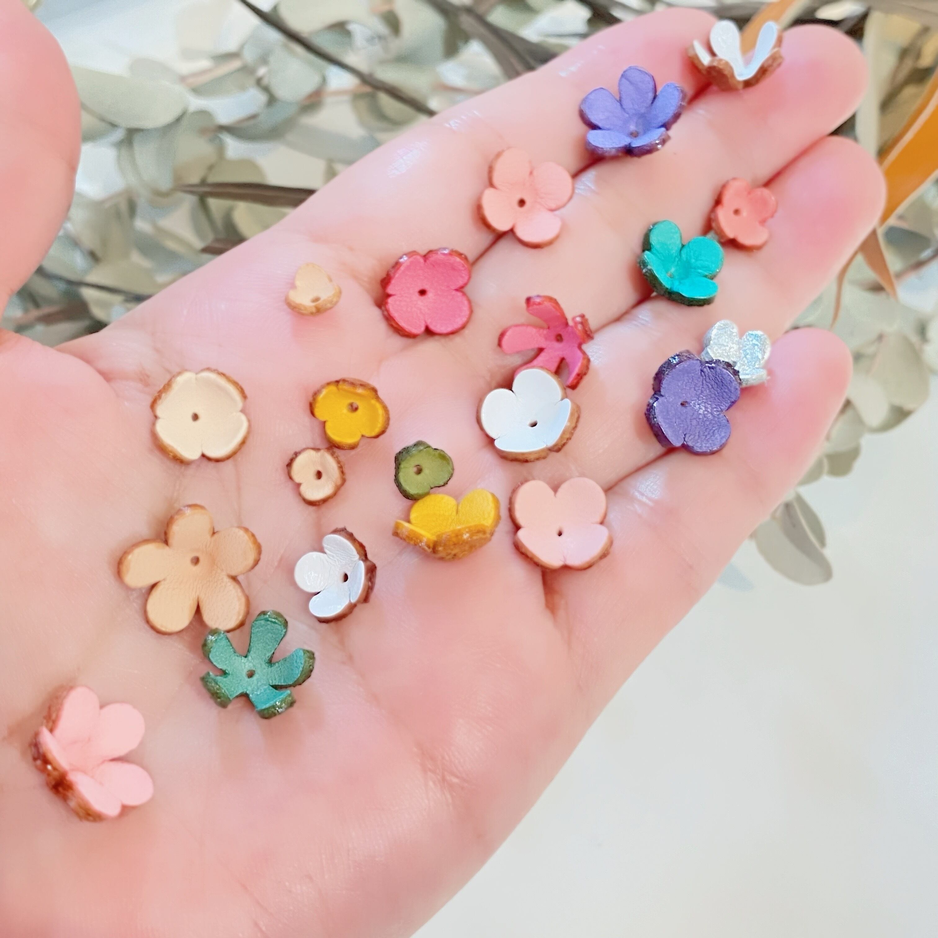 【小花3Dレザーフラワー】カプセル入お楽しみ20個セット(パステルカラー)