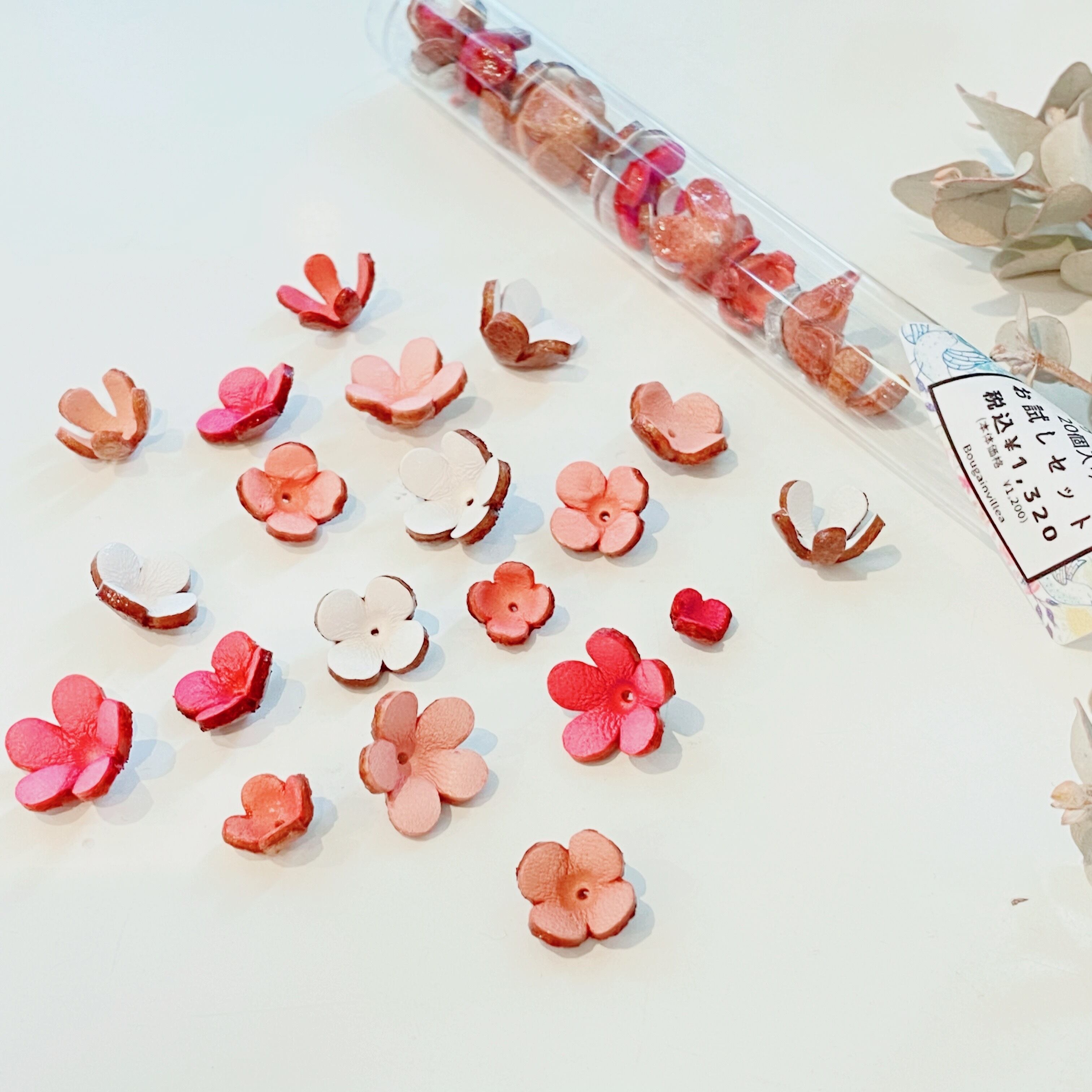 【小花3Dレザーフラワー】カプセル入お楽しみ20個セット(ピンクカラー)