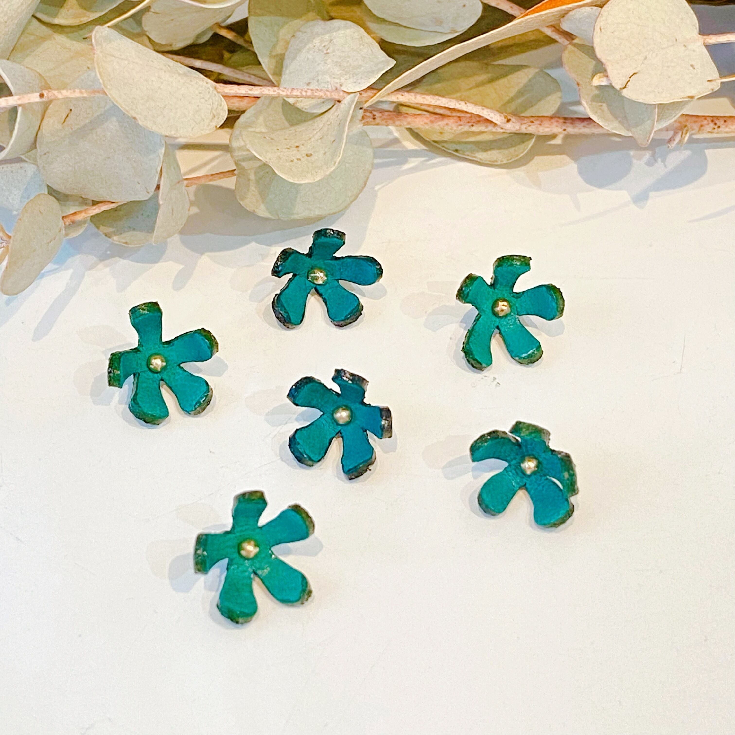 【アウトレット】3Dレザーフラワー スターフラワー (ピン付タイプ)6個入(ブルー)