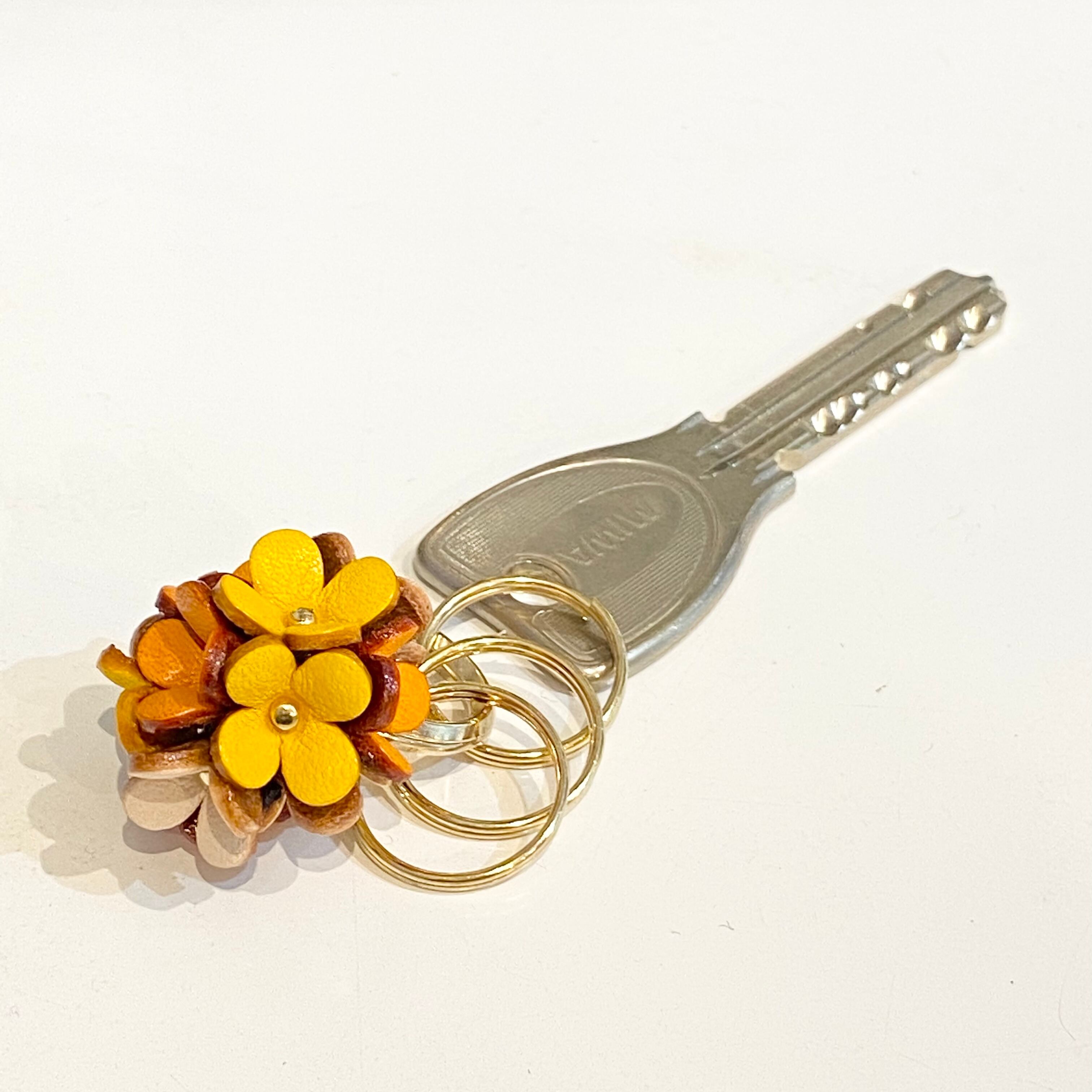 カランコエの花をイメージしたレザーフラワーを使ったキーホルダーです。