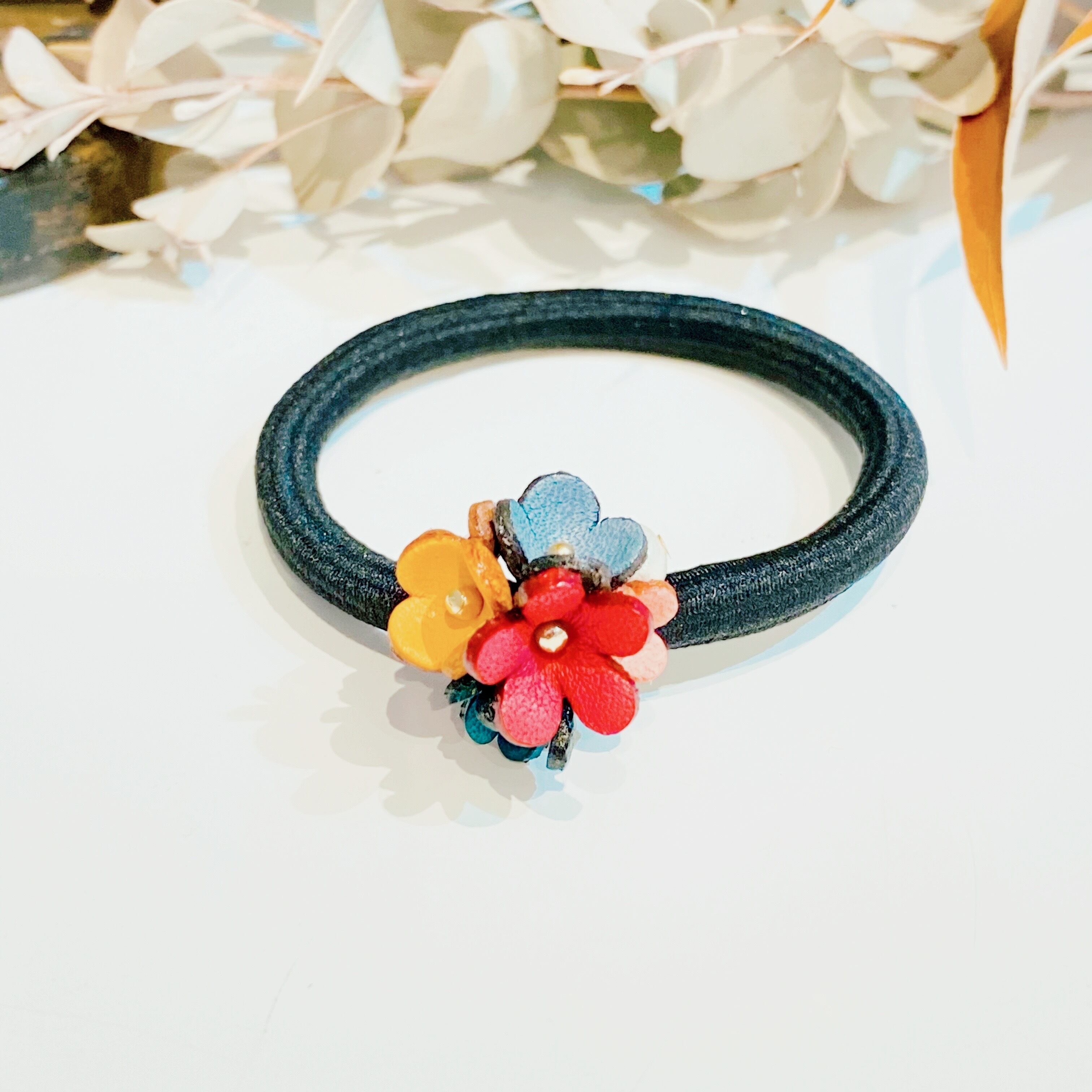 ★キット内容:小花レザーフラワー・シャイニーパール・ひも付きヘアゴム