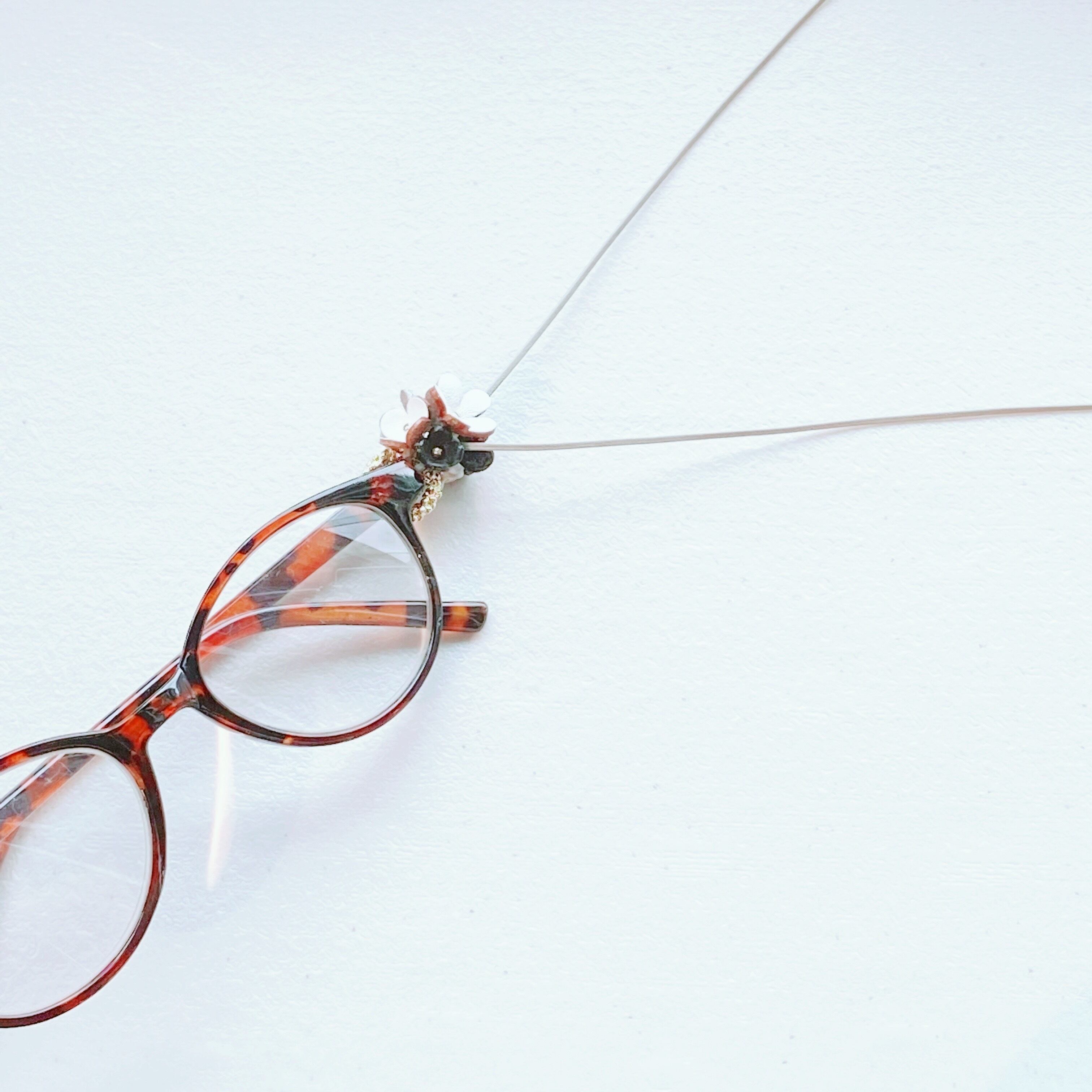 【完成品】プチフラワーメガネホルダーネックレス(花色ホワイトカラー)