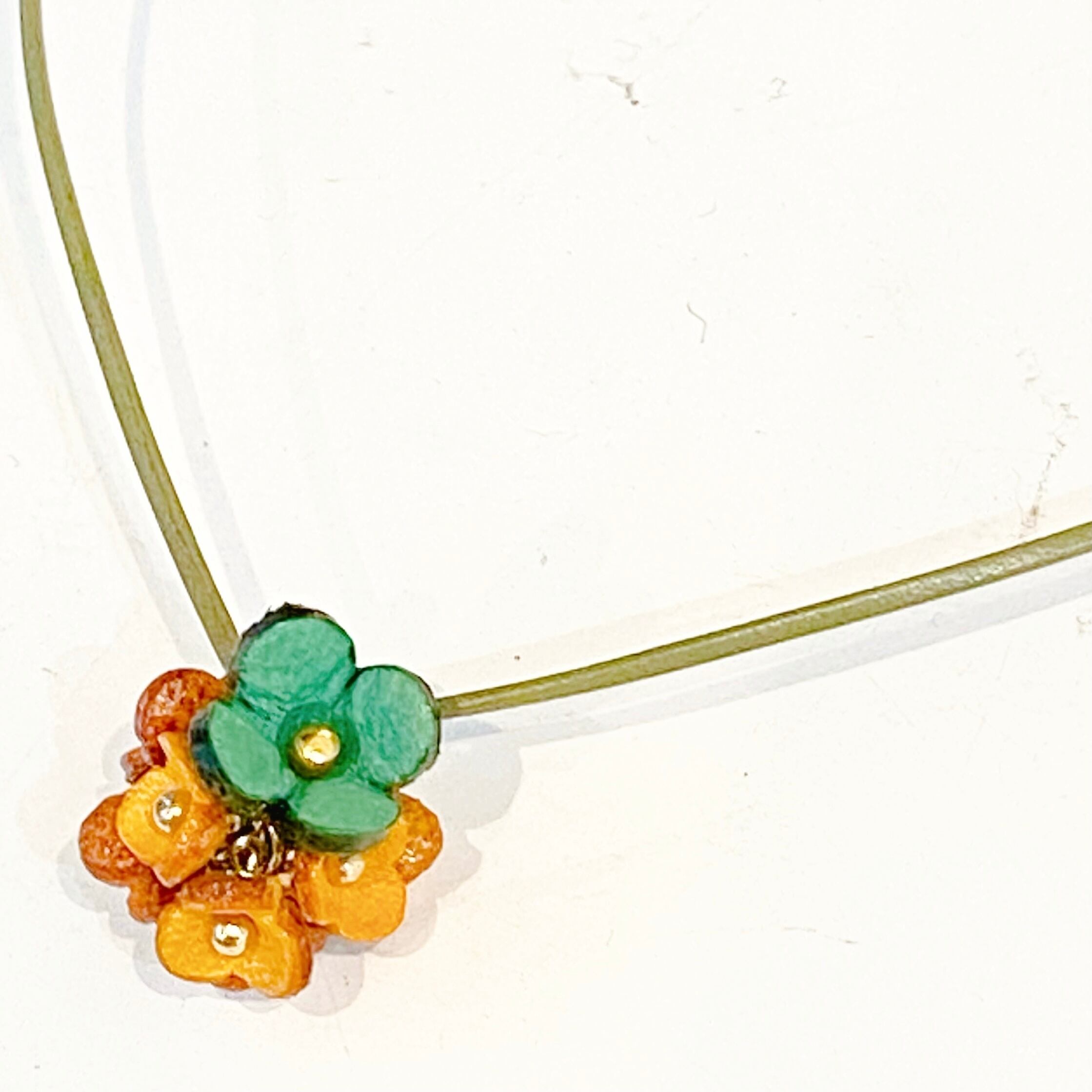 アナベル型のレザーフラワーがアクセントの小花チョーカーです。