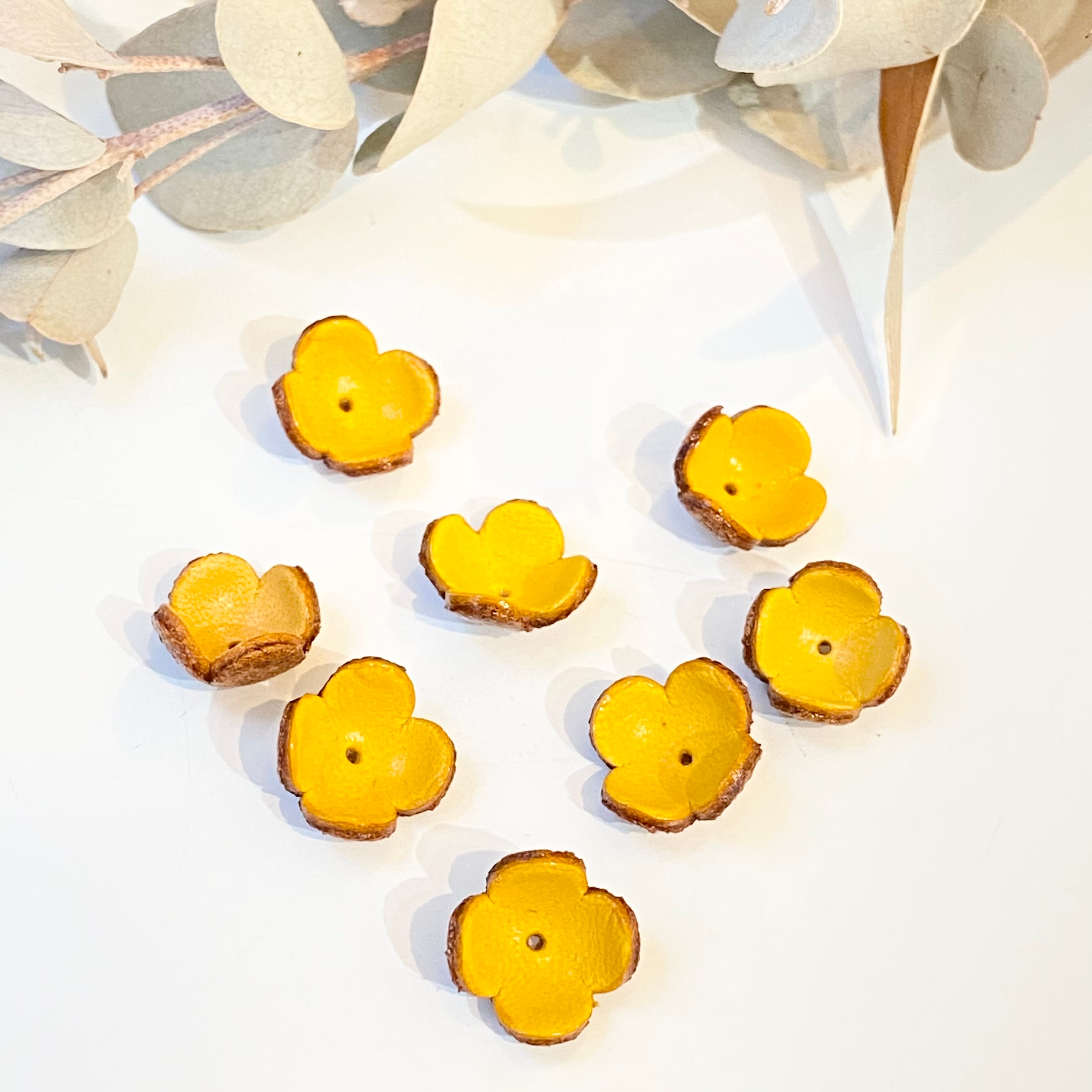 【アウトレット】3Dレザーフラワー クローバーS (ピンなしタイプ)8個入(イエロー)