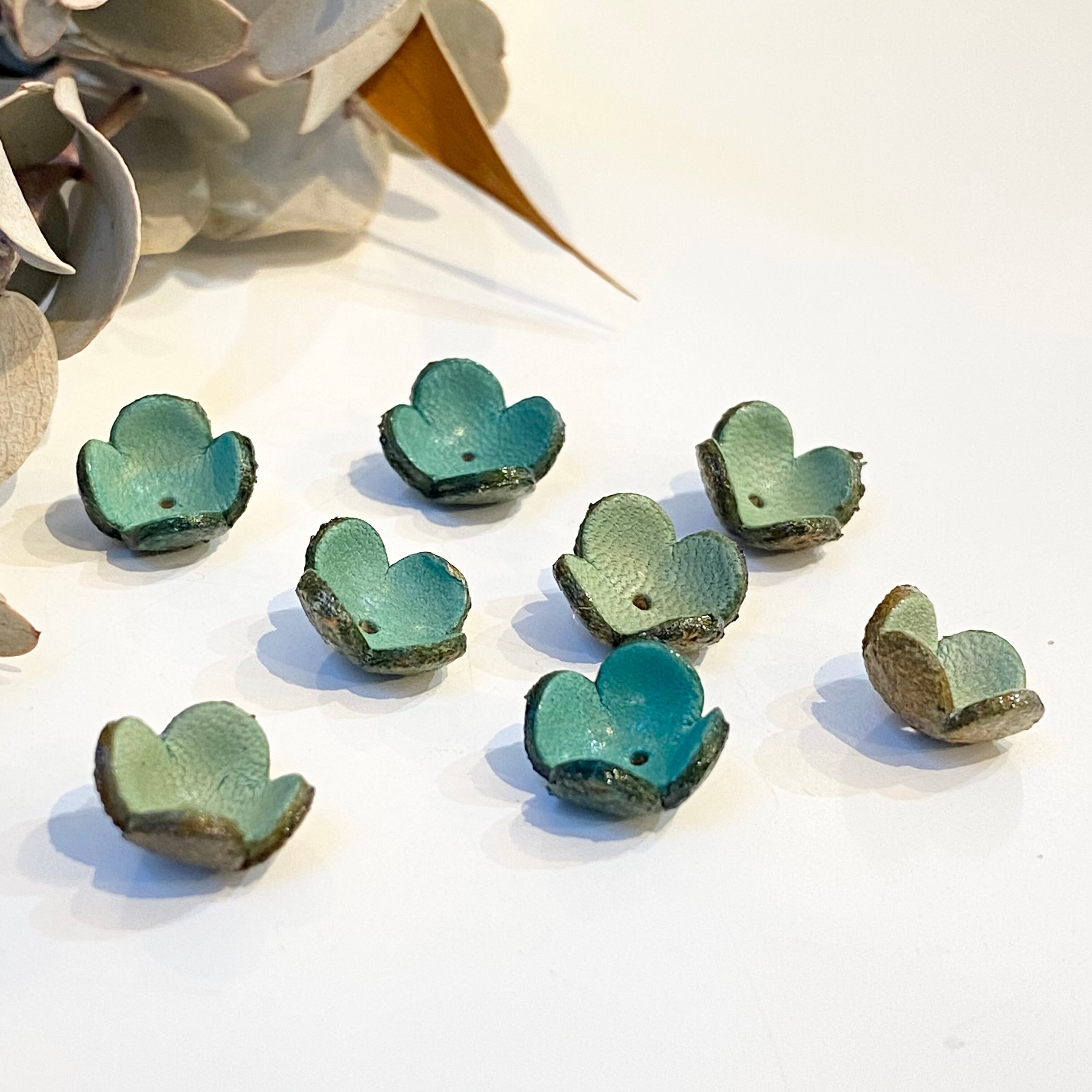 【アウトレット】3Dレザーフラワー クローバーS (ピンなしタイプ)8個入(ペールブルー)