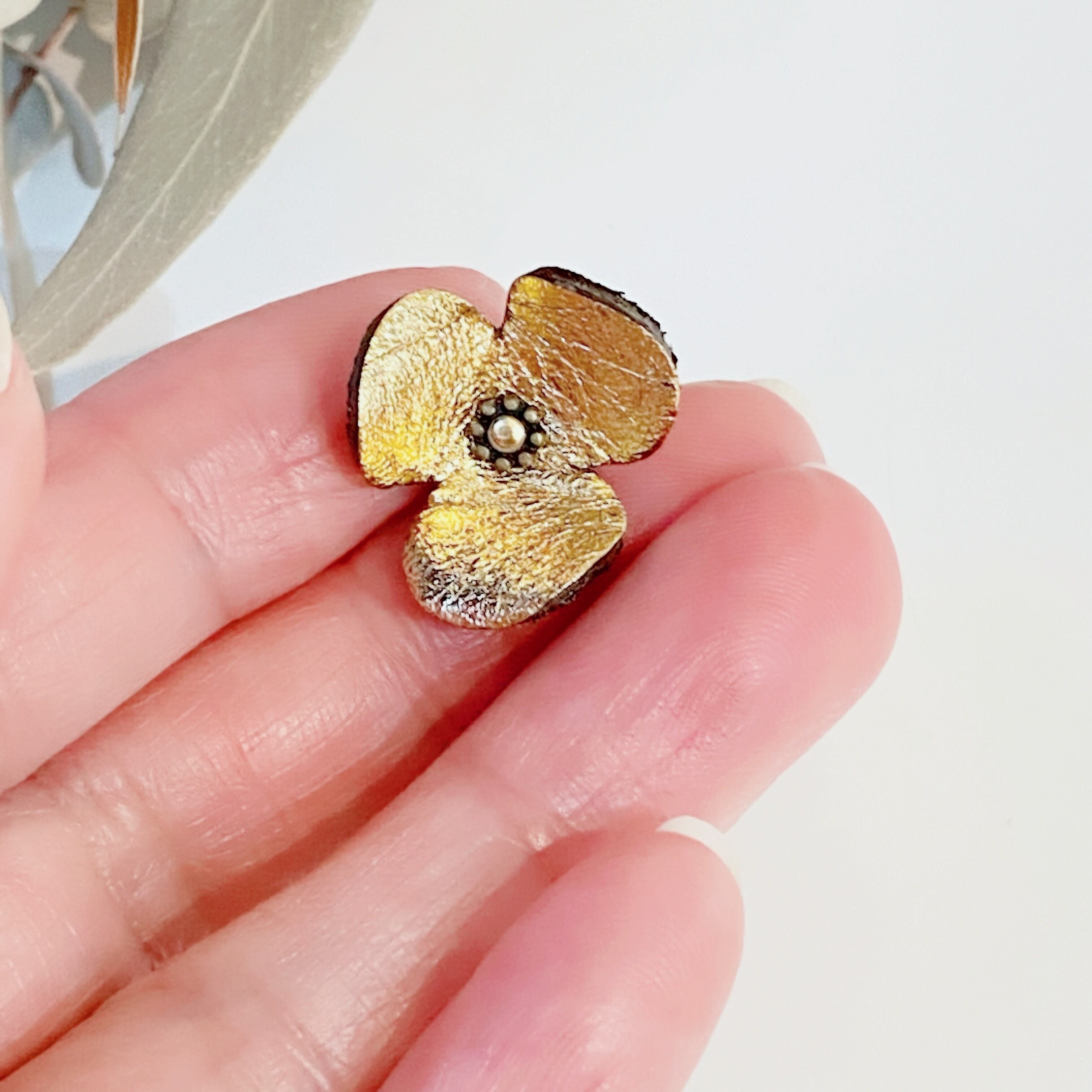 【アウトレット価格】レザーフラワー3Dパーツ ビオラM ゴールド ピン付き(5個入)