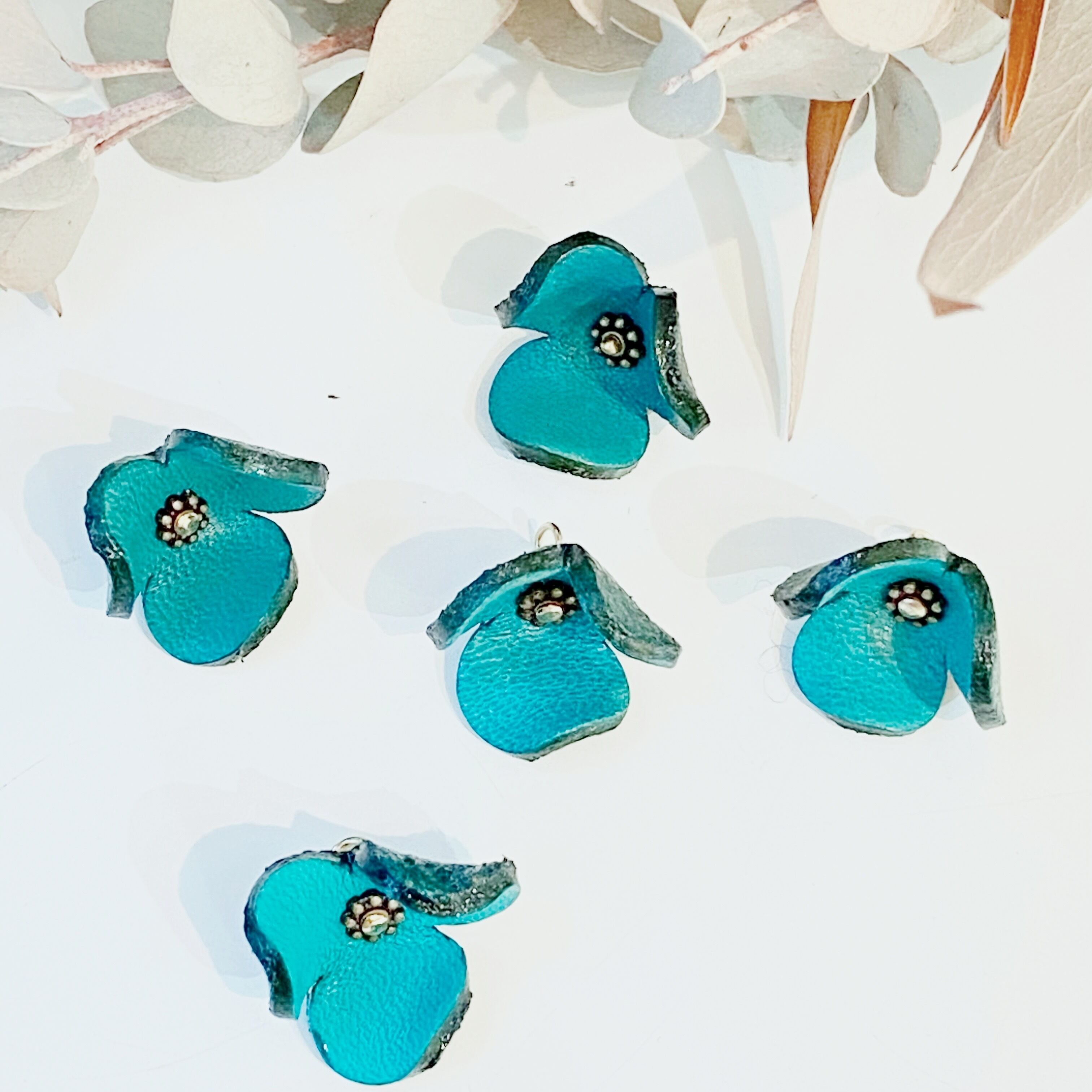 【アウトレット価格】レザーフラワー3Dパーツ ビオラM ブルー ピン付き(5個入)
