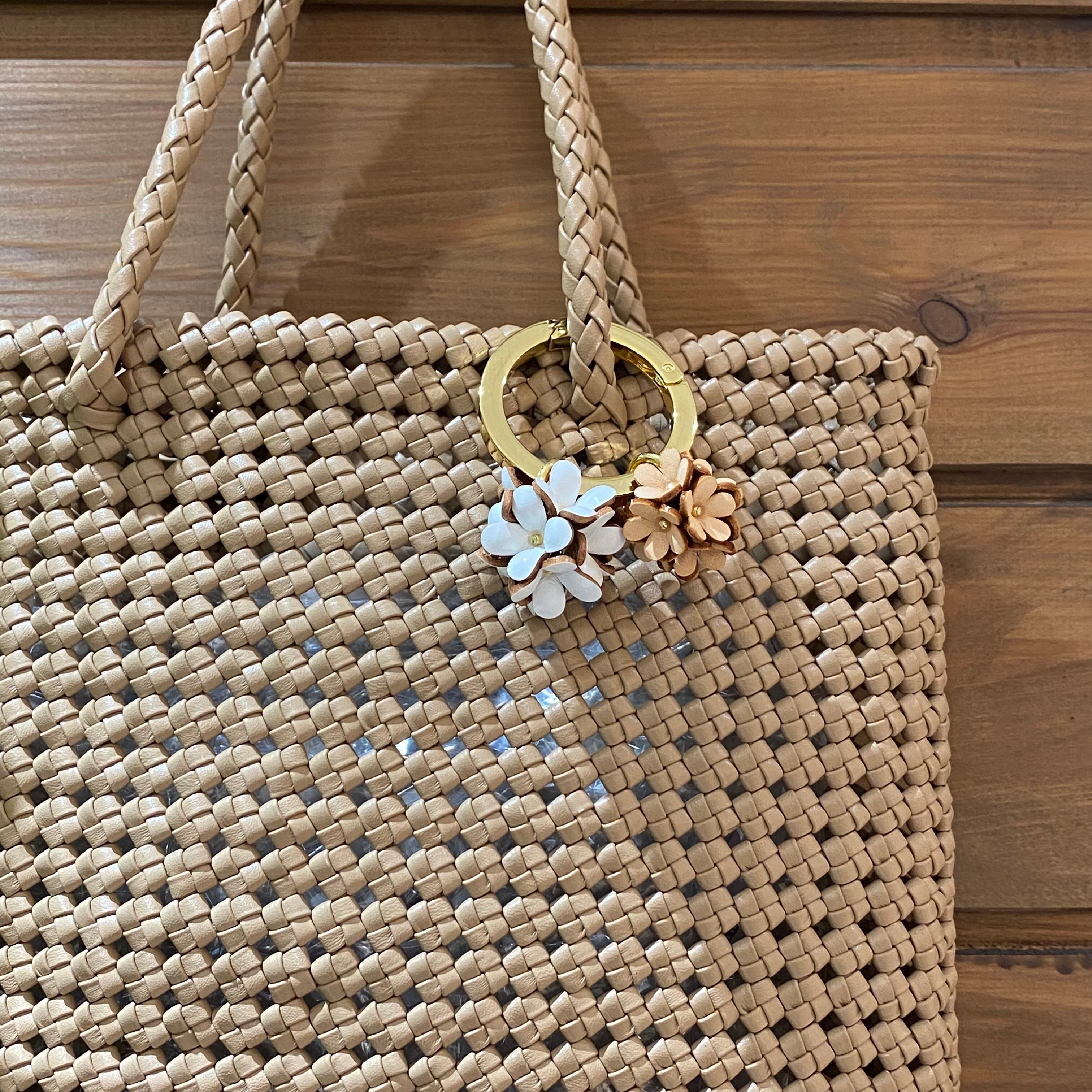 【完成品】ダブルフラワー カラビナチャーム(花色ホワイトナチュラル)