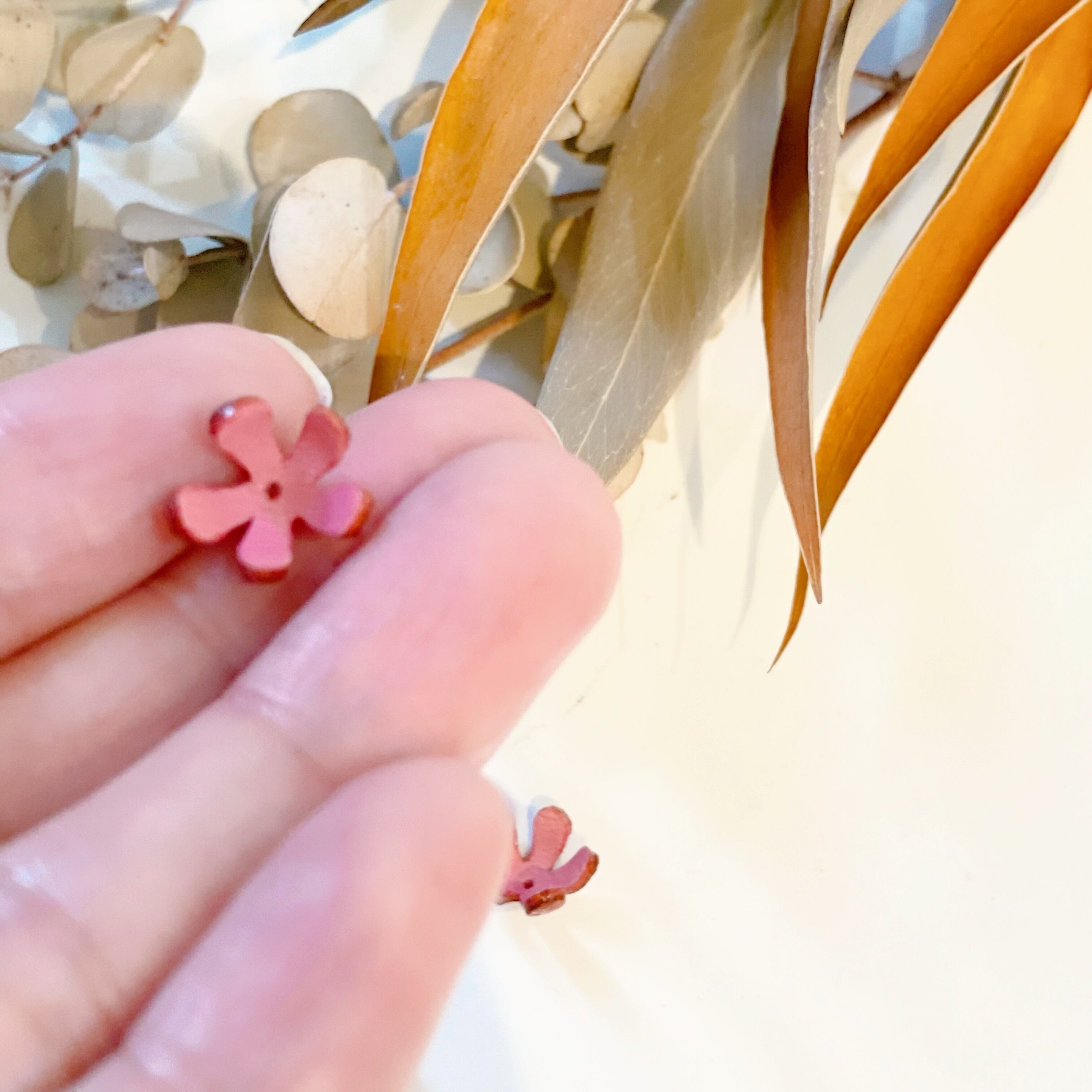 ※手染め、手加工の為、同色でも多少色味の濃淡があるのと、花型の開き気味なものやつぼみ気味もの等もございます。この感じが生花の様にアクセサリー製作に使用することでナチュラルさがでますので、形、色味に関してその点をご了承下さい