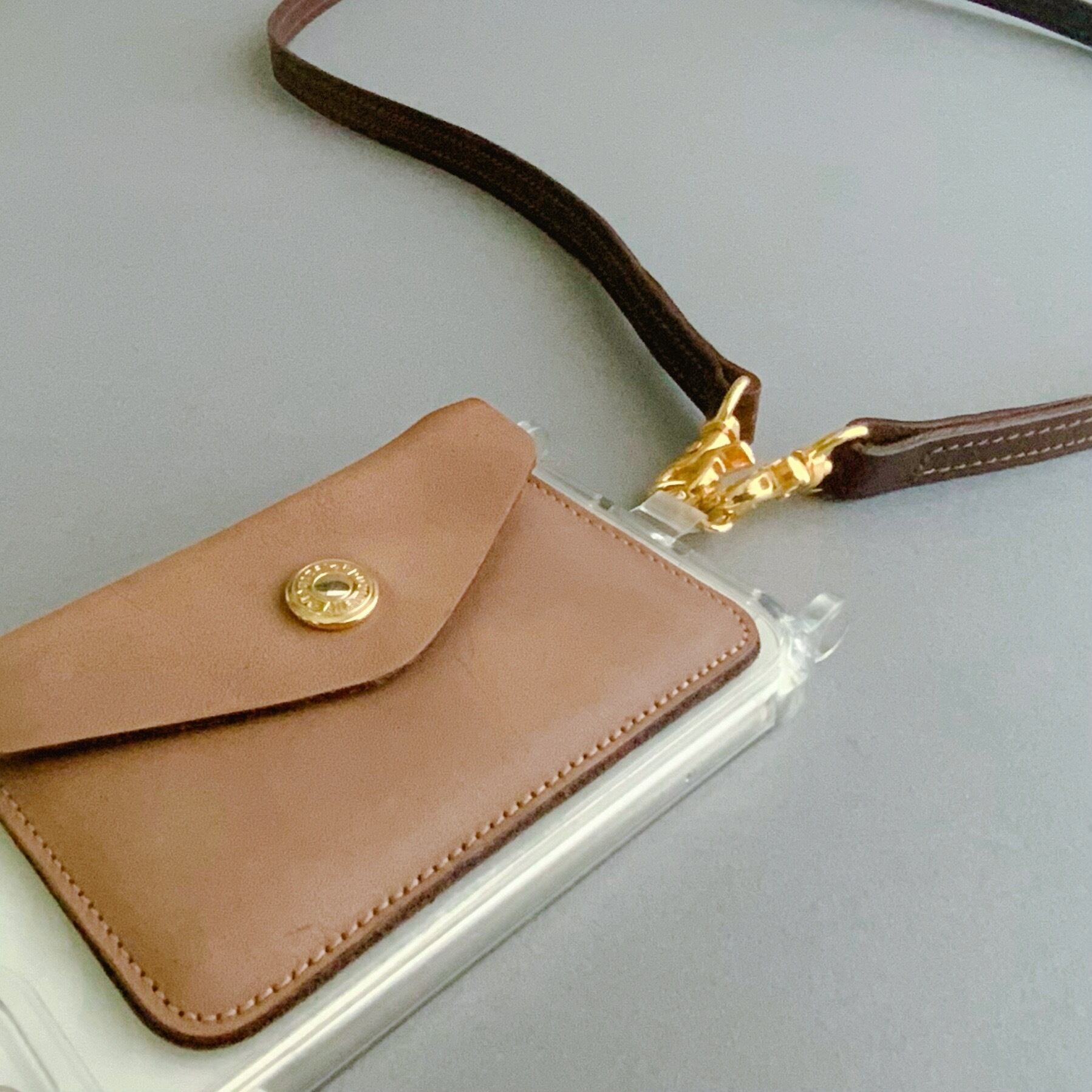 【クリア スマホストラップ付き】リッチレザーショルダー(ブラウン)