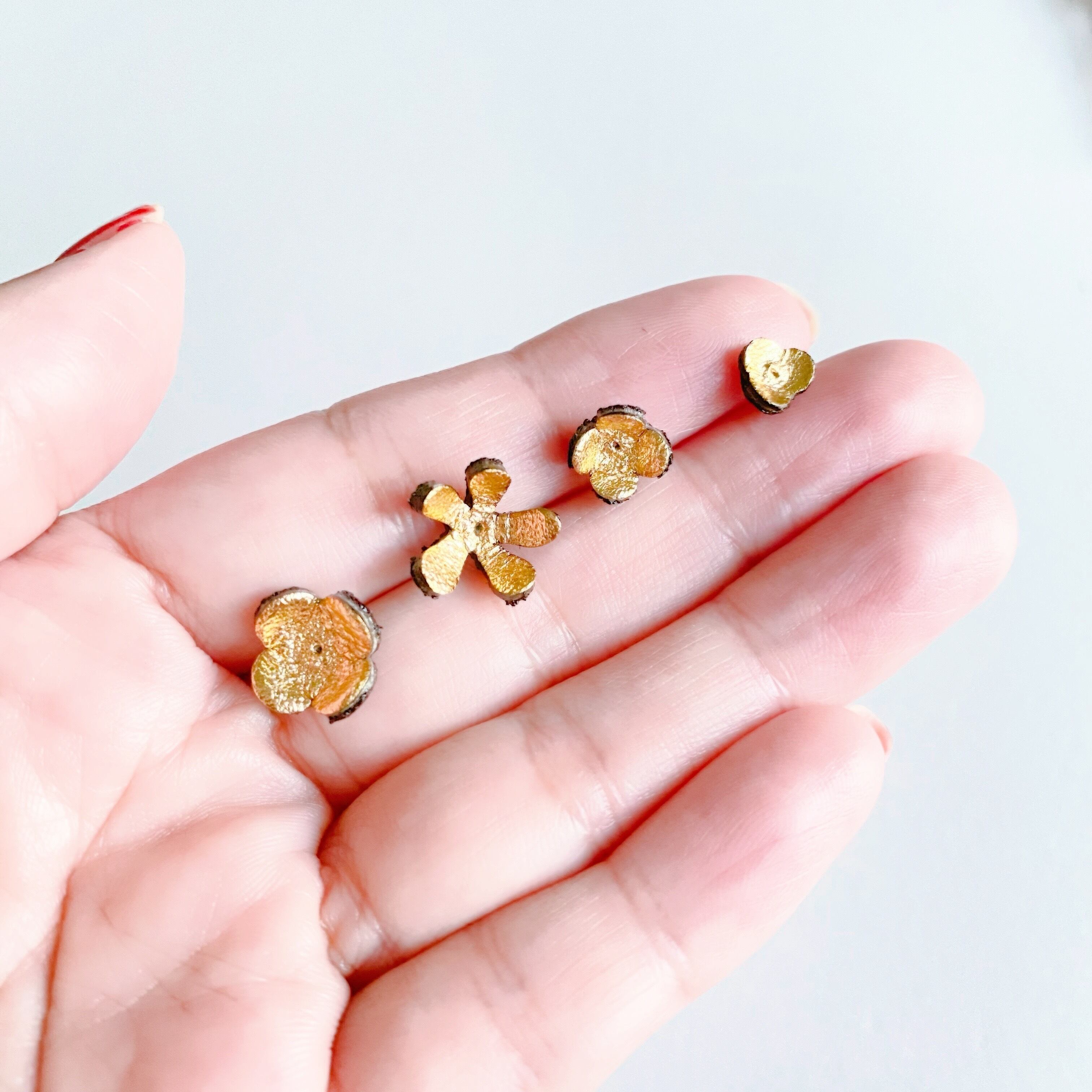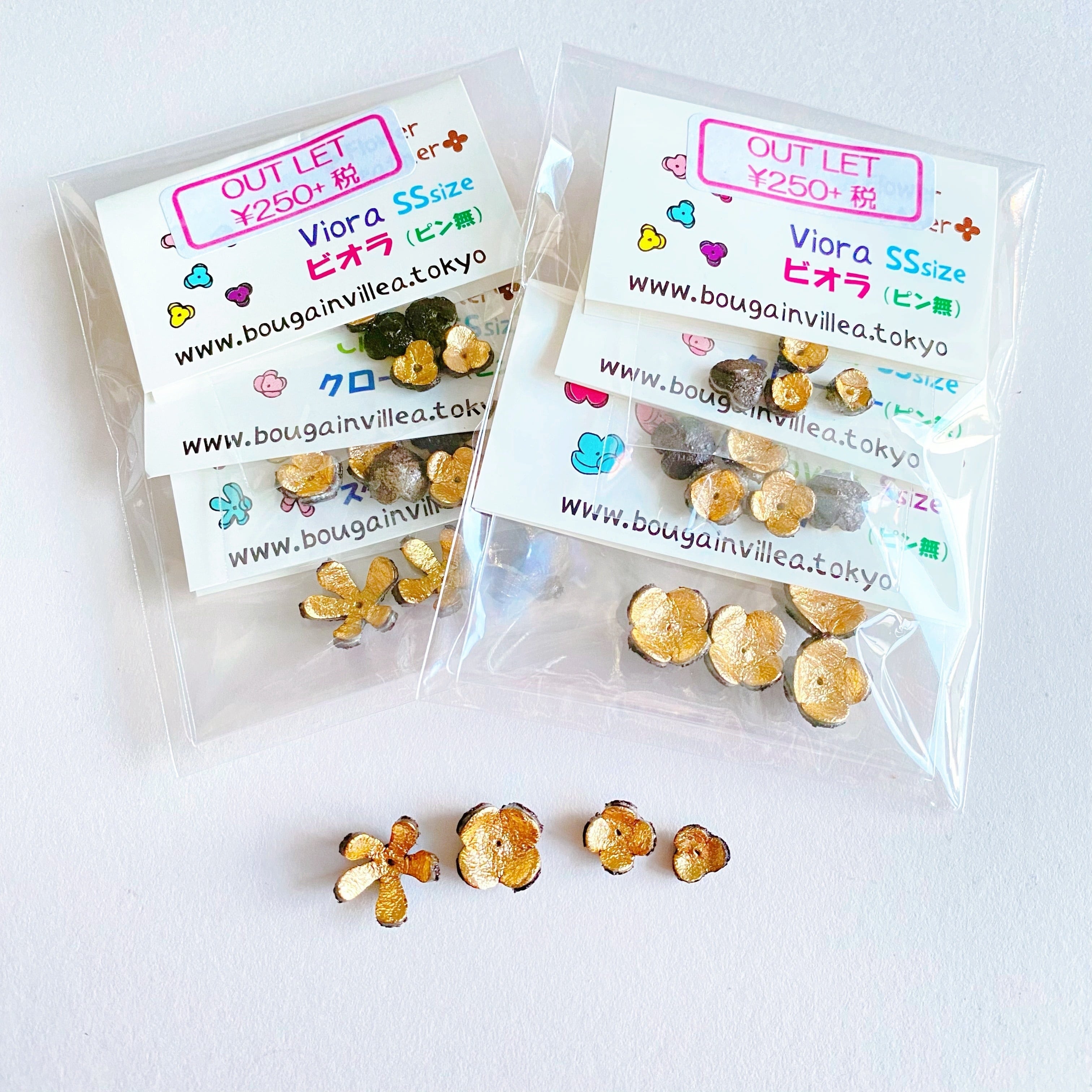 【アウトレット立体レザーフラワー】ピン無し小花3点セット(ゴールド)10個入