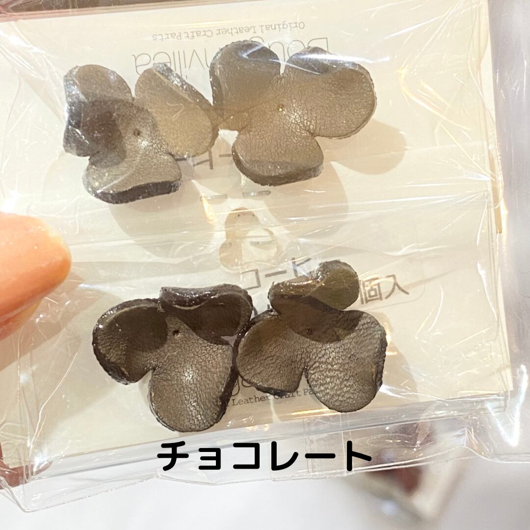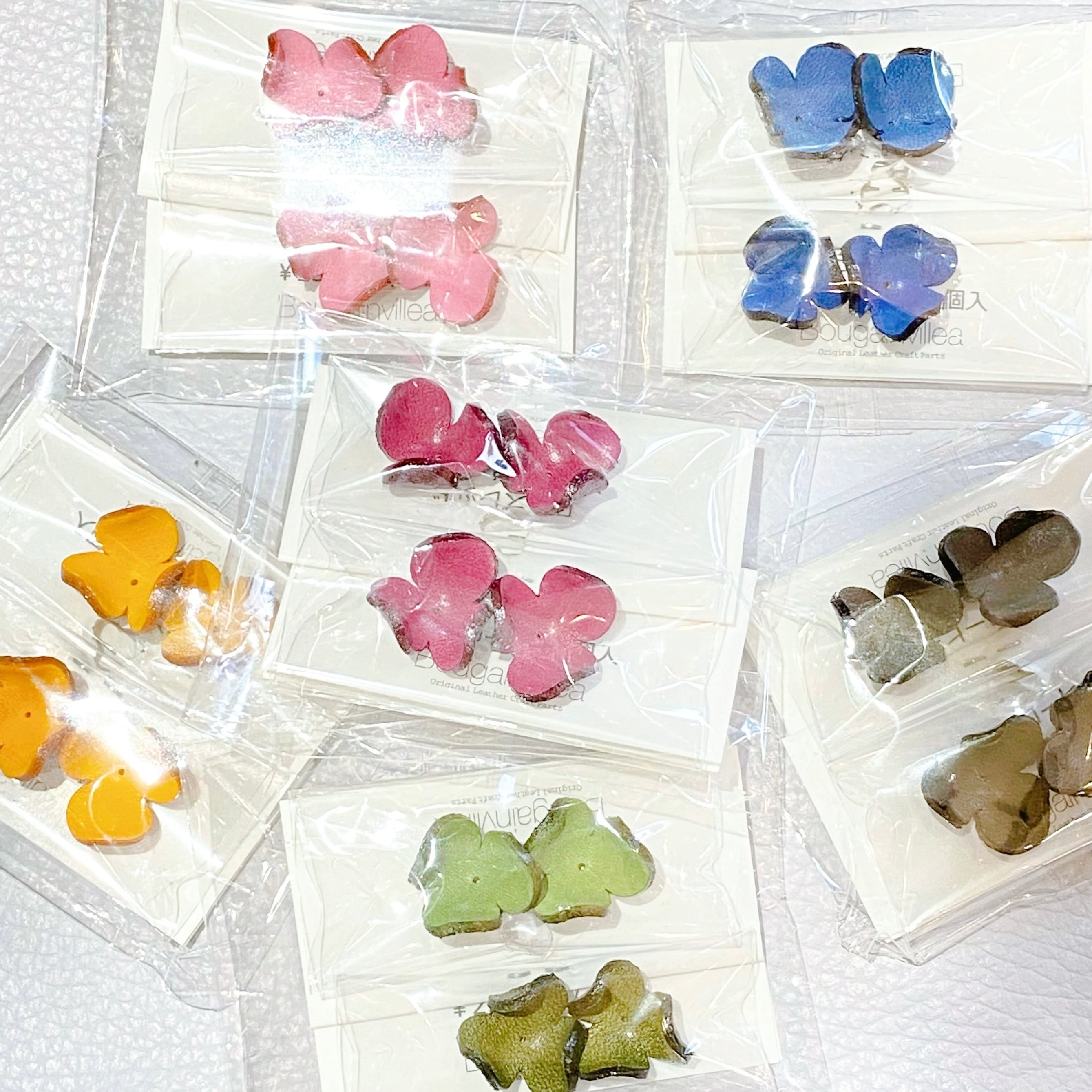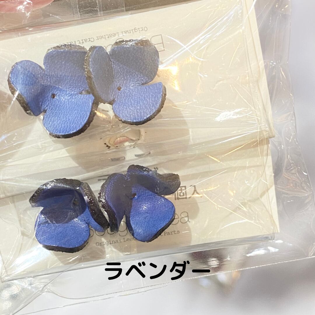 3弁花の花びらの形が可愛い牛革立体花型パーツです。