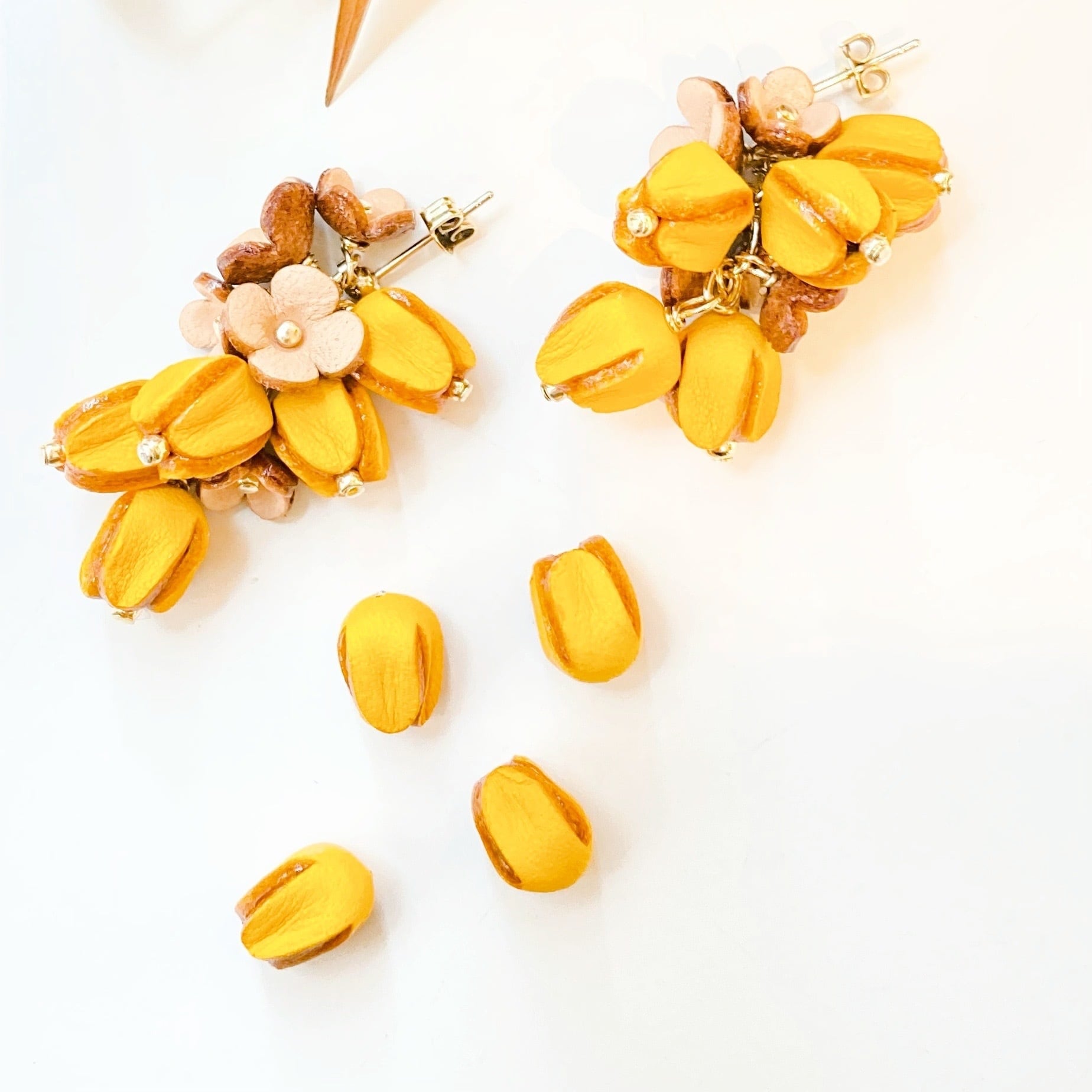 【レザーフラワーパーツ】エリカ(イエロー)2個入