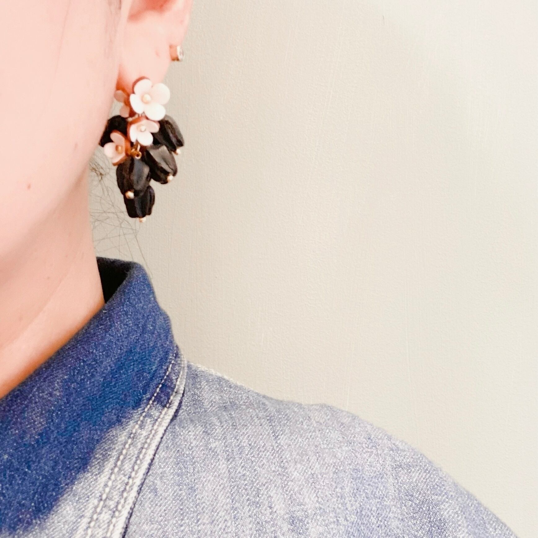 新色【レザーフラワーパーツ】エリカ(ブラックカラー)ピン付2個入