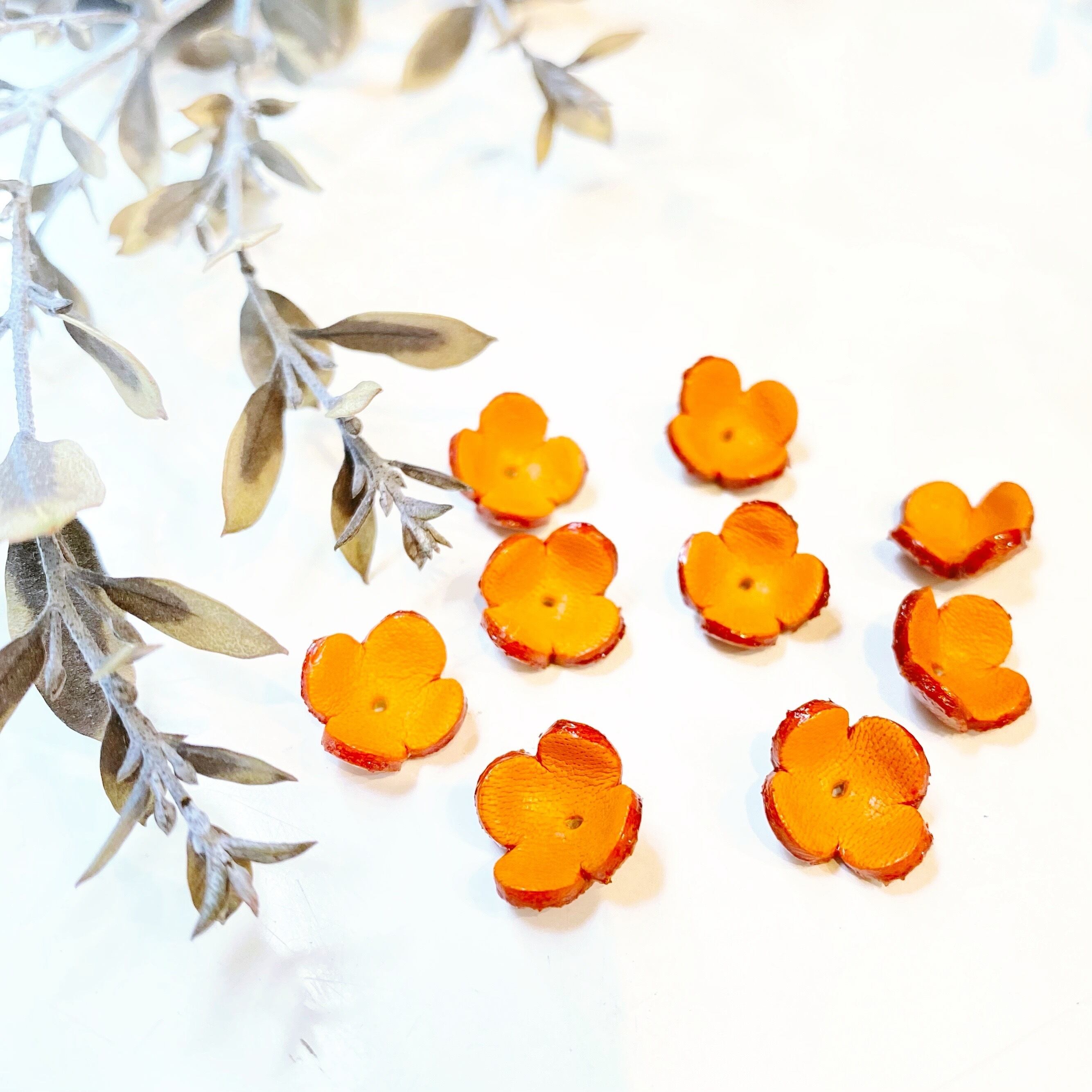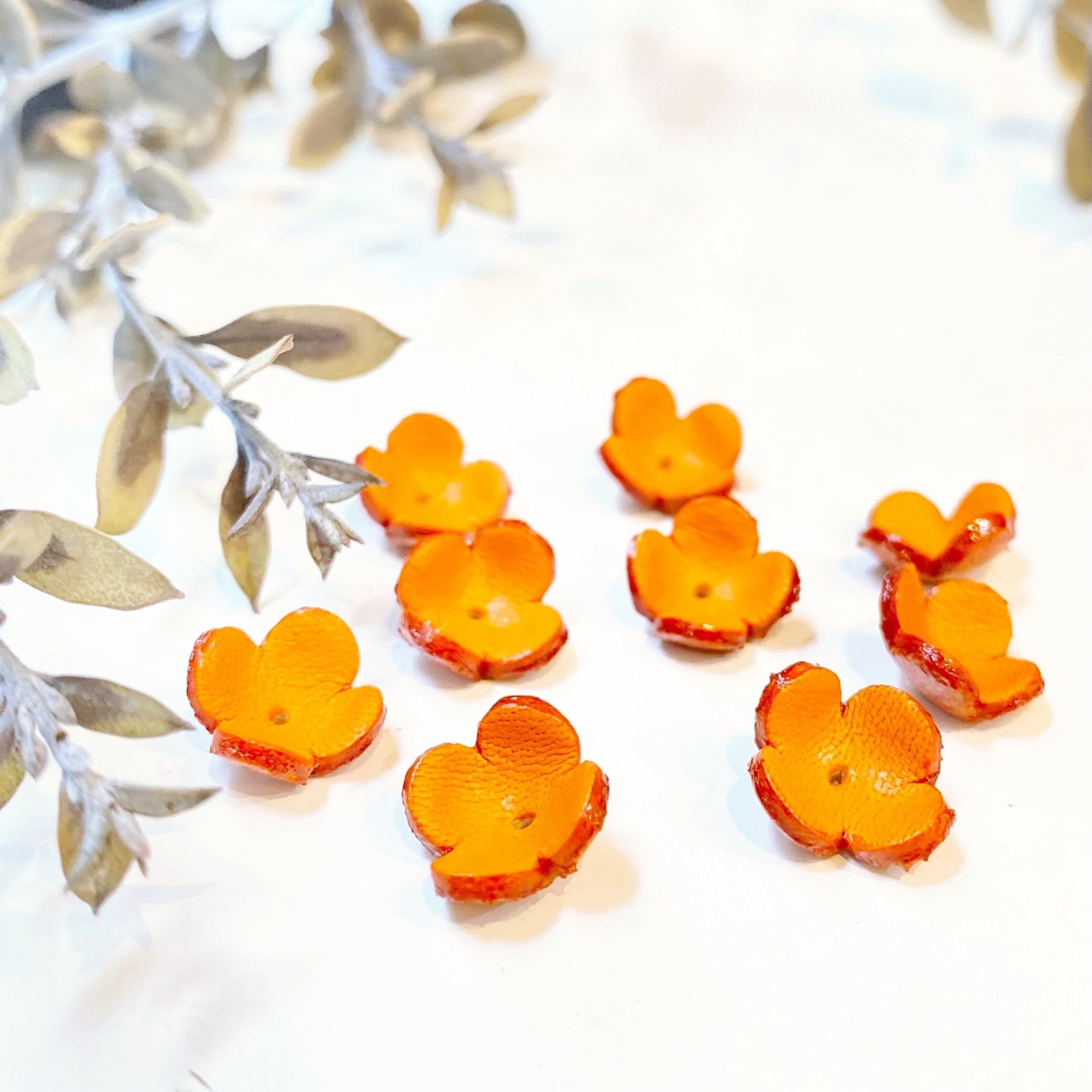 【アウトレット3D立体レザーフラワー】クローバーS (ピン無しタイプ)オレンジ8個入