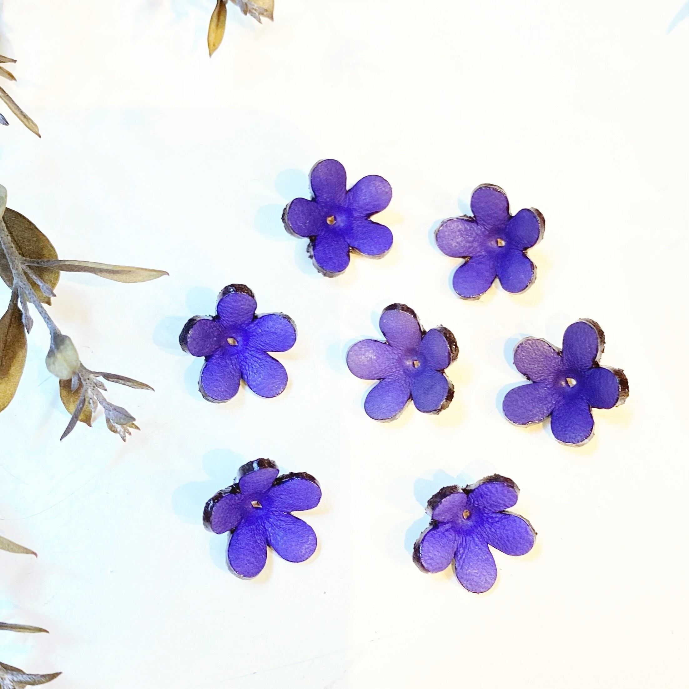 アウトレットのレザーフラワーパーツは多少、色、形が不揃いだったり、裏の塗りが少々