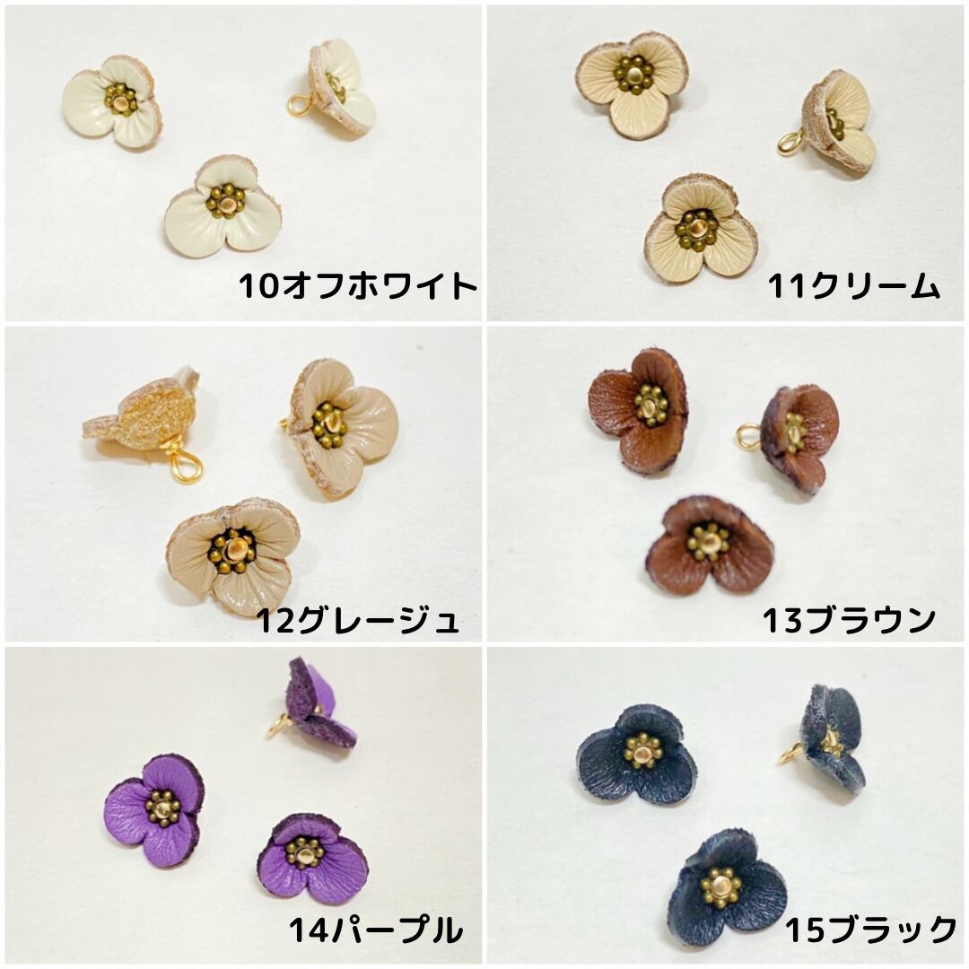 スミレをイメージした花形のレザーフラワーは、手作りアクセサリーやヘアアクセサリー作りに最適です。独自のカラーバリエーションも豊富で、お好みの色合いをお選びいただけます。プロジェクトやハンドメイド作品にぜひ取り入れて、個性的なアイテムを作り上げてみてください。